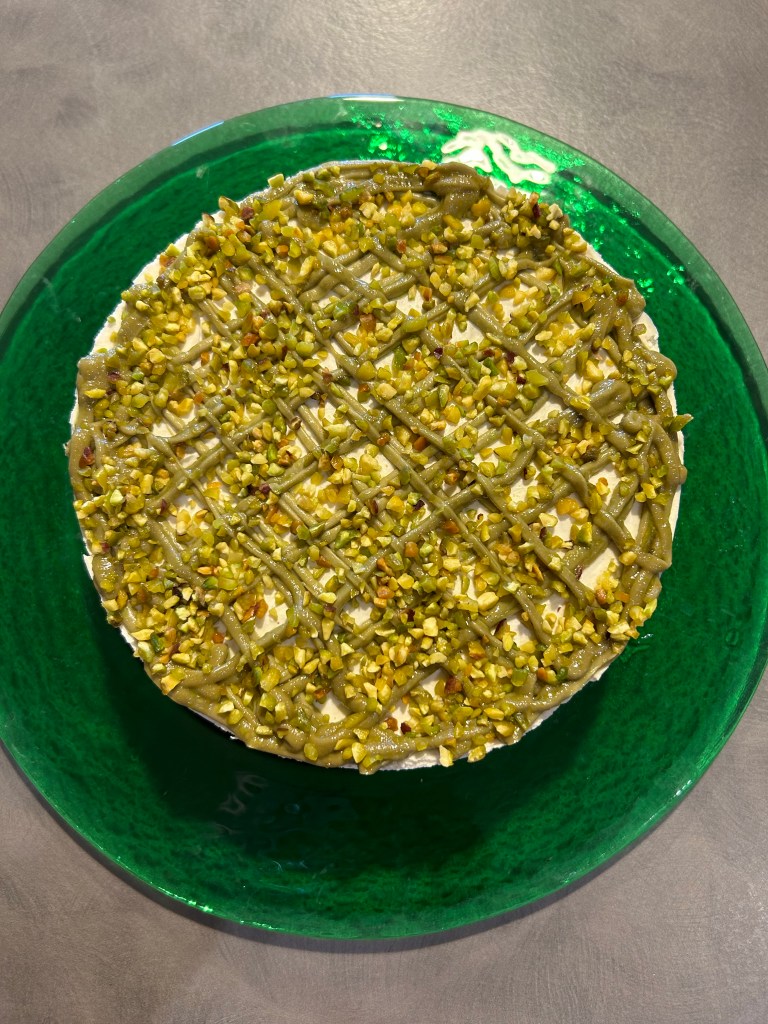 Ho decorato con cioccolato fondente e gocce di crema al pistacchio