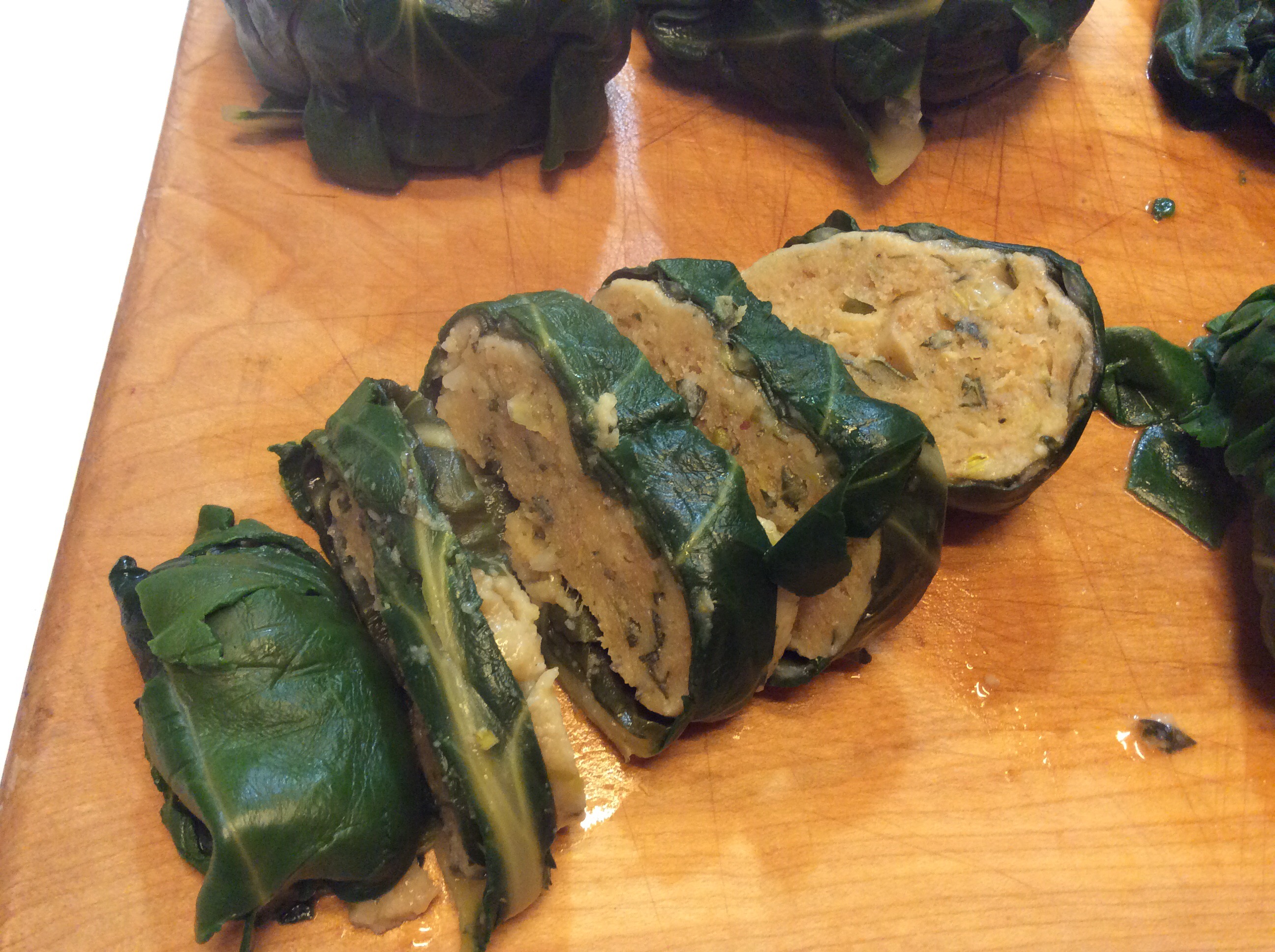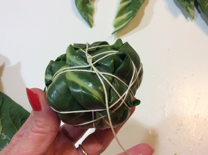 Arrotolo chiudendo bene a fagottino in modo che il ripieno resti ben chiuso all’interno