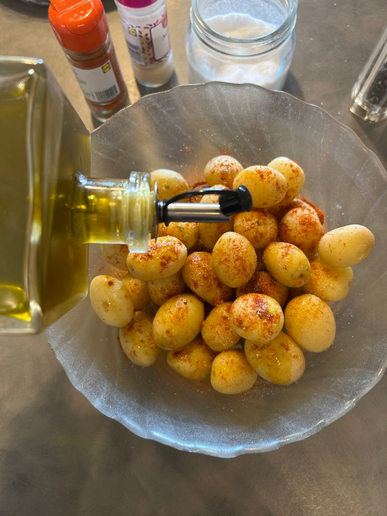 Li taglio a fettine e li dispongo su un piatto versando del buon olio extravergine