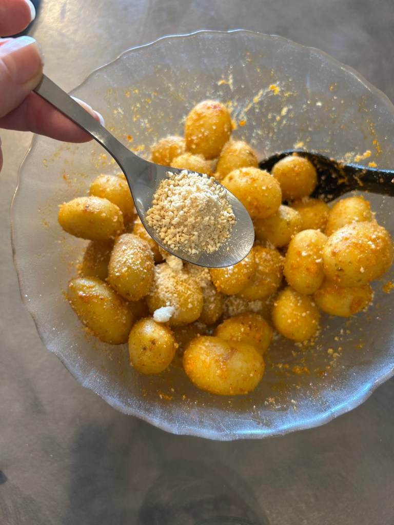 Inizio ad impastare, devo ottenere un impasto compatto ma morbido e aggiungo mezzo spicchio di aglio grattugiato