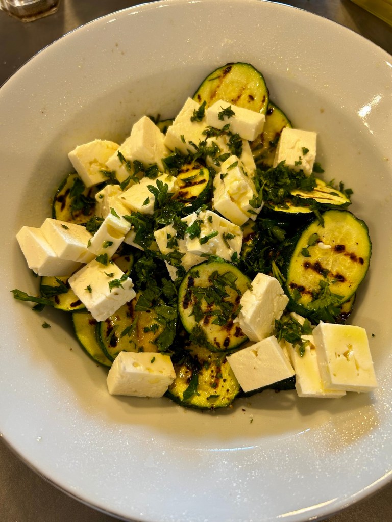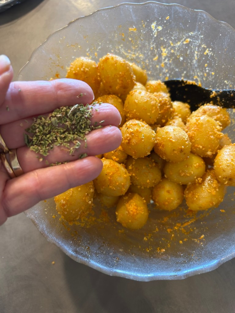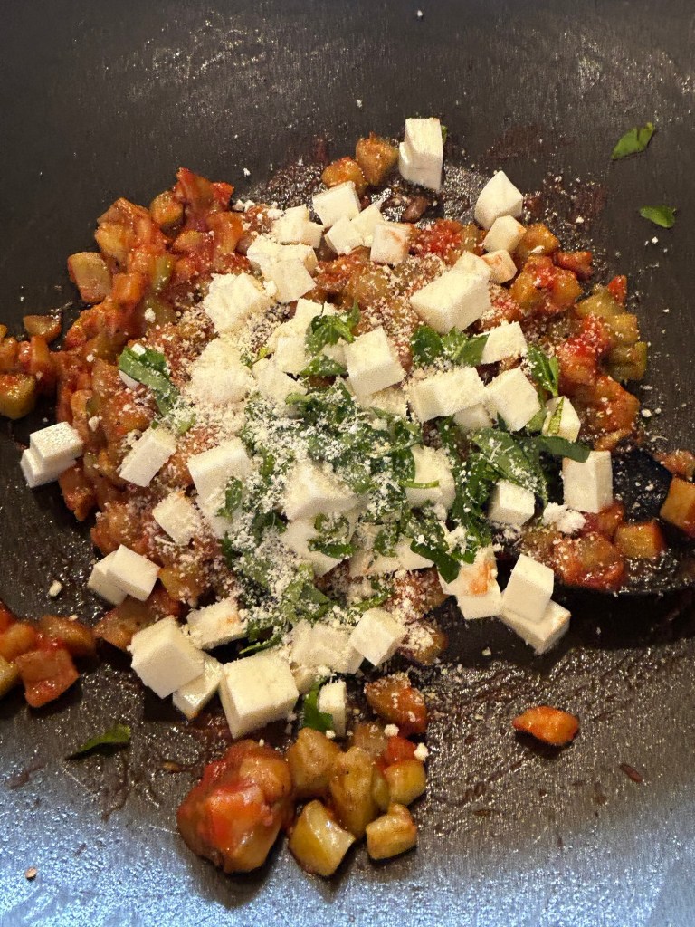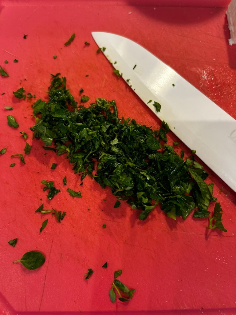 Unisco le foglie tritate, pepe e sale un ciuffo di prezzemolo tritato