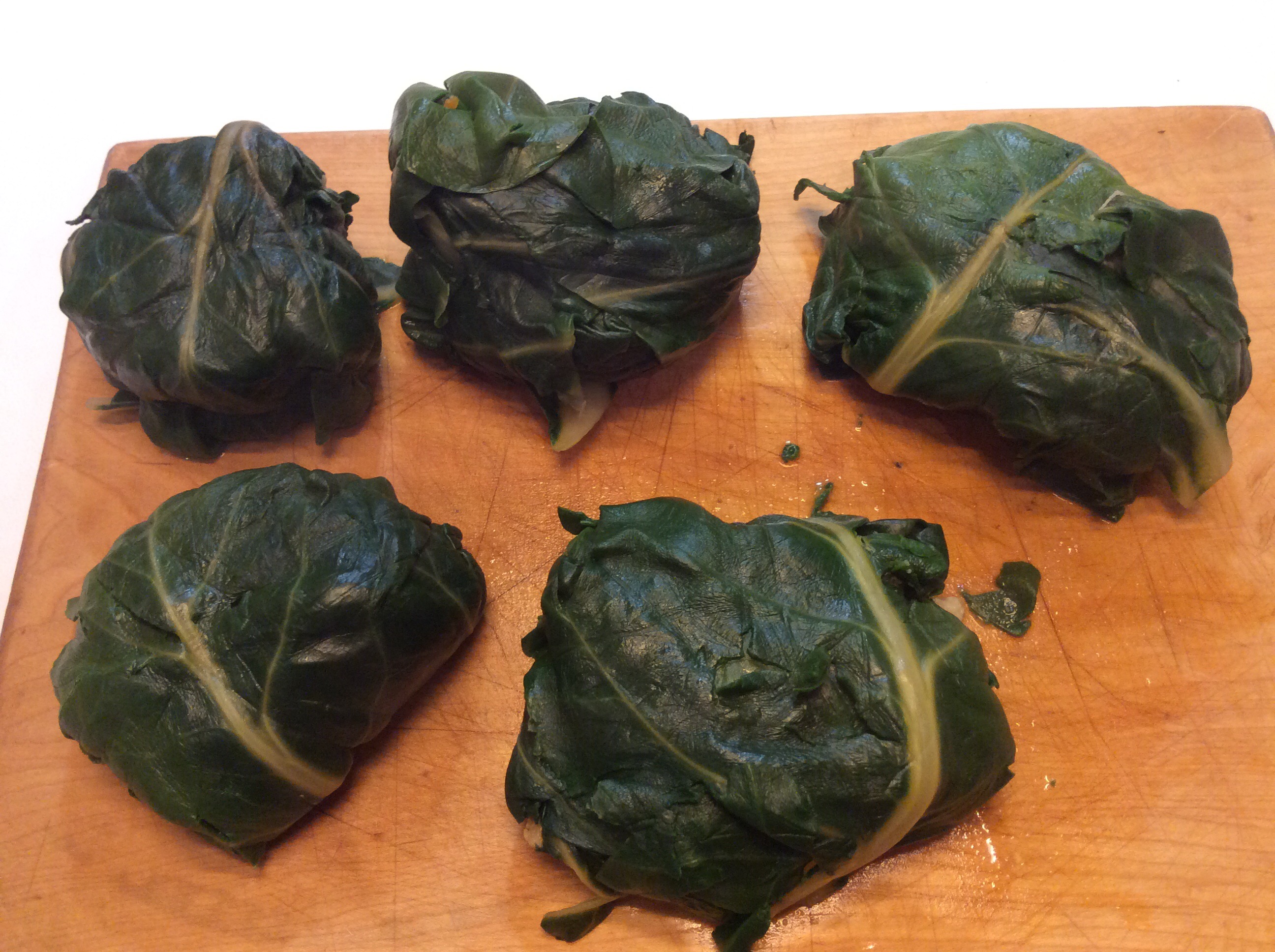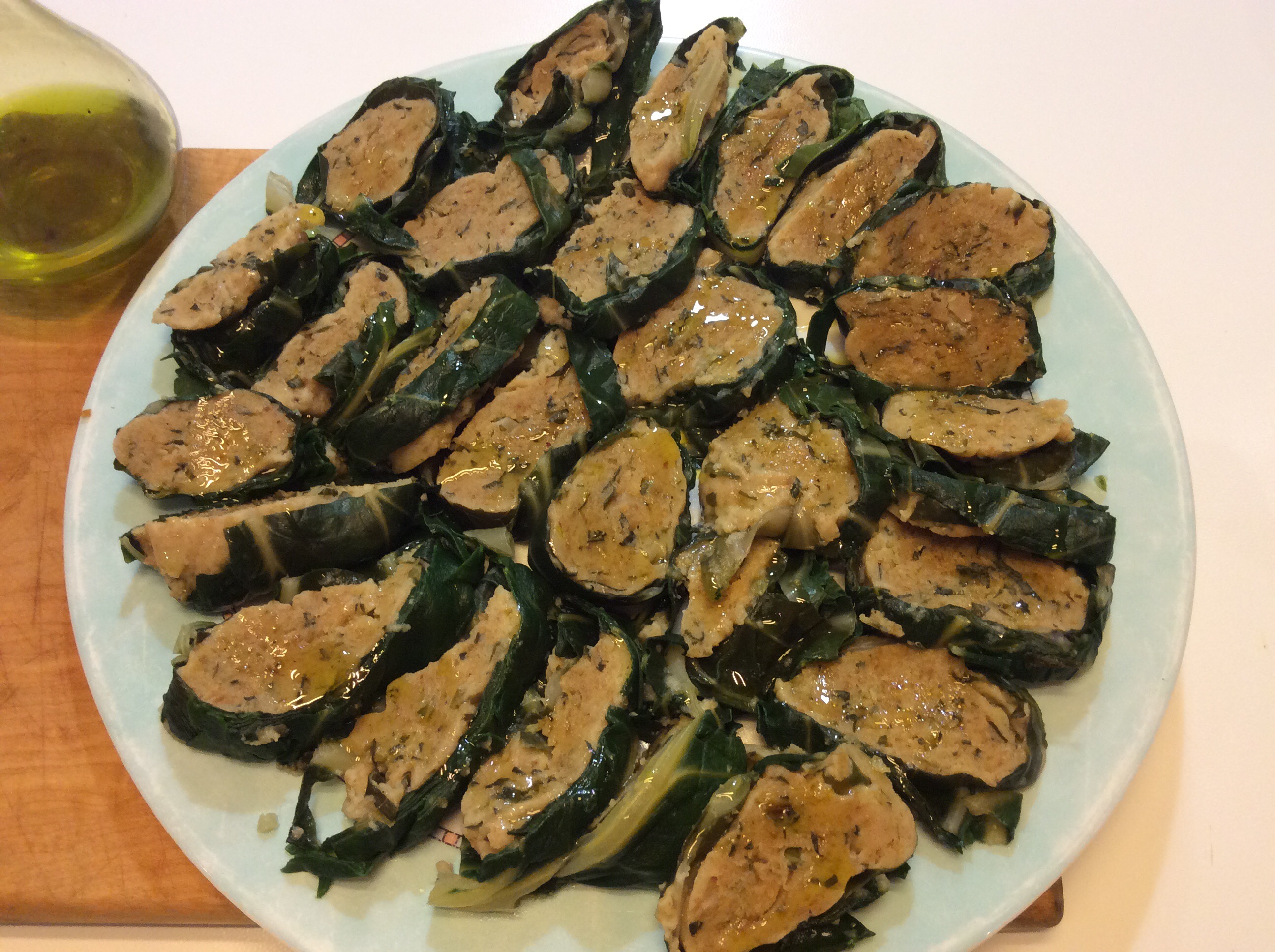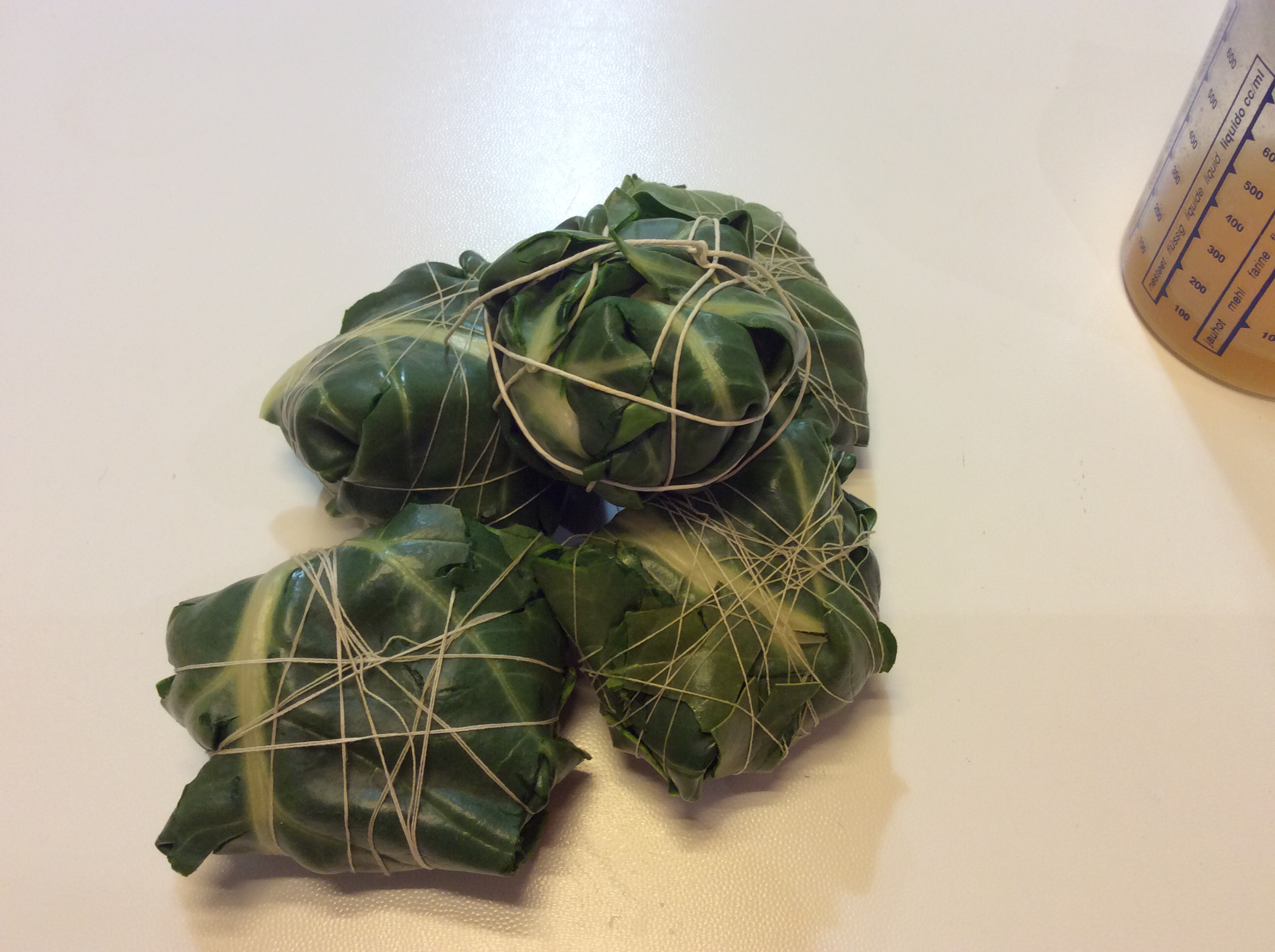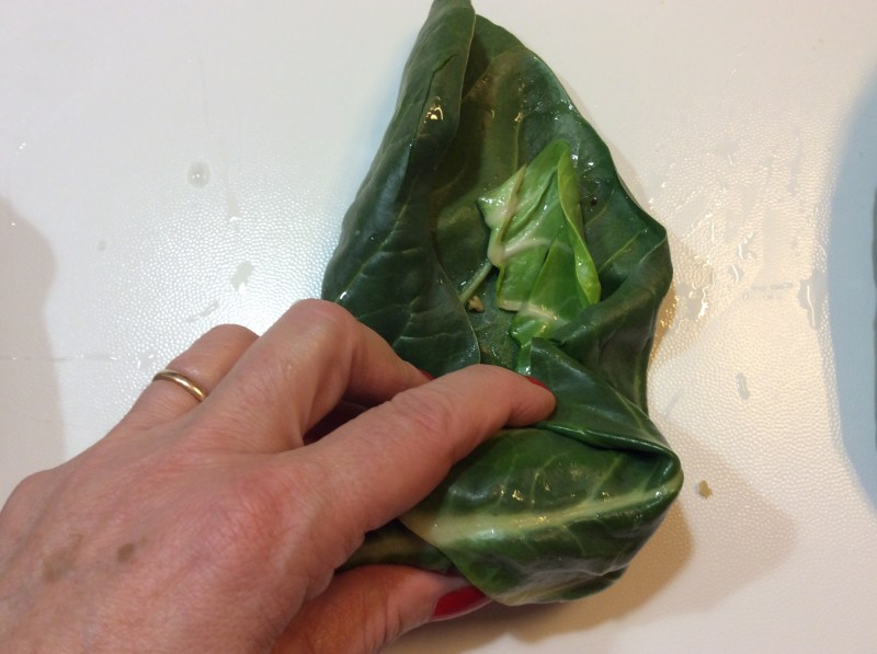 Arrotolo chiudendo bene a fagottino in modo che il ripieno resti ben chiuso all’interno