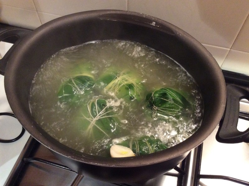 Porto una pentola con acqua in ebollizione con pochissimo sale e lesso i “Capù” per circa 20 minuti, per verificare la cottura provate a pungerli, le foglie devono essere tenere, io ho aggiunto la metà dello spicchio di aglio nell’acqua