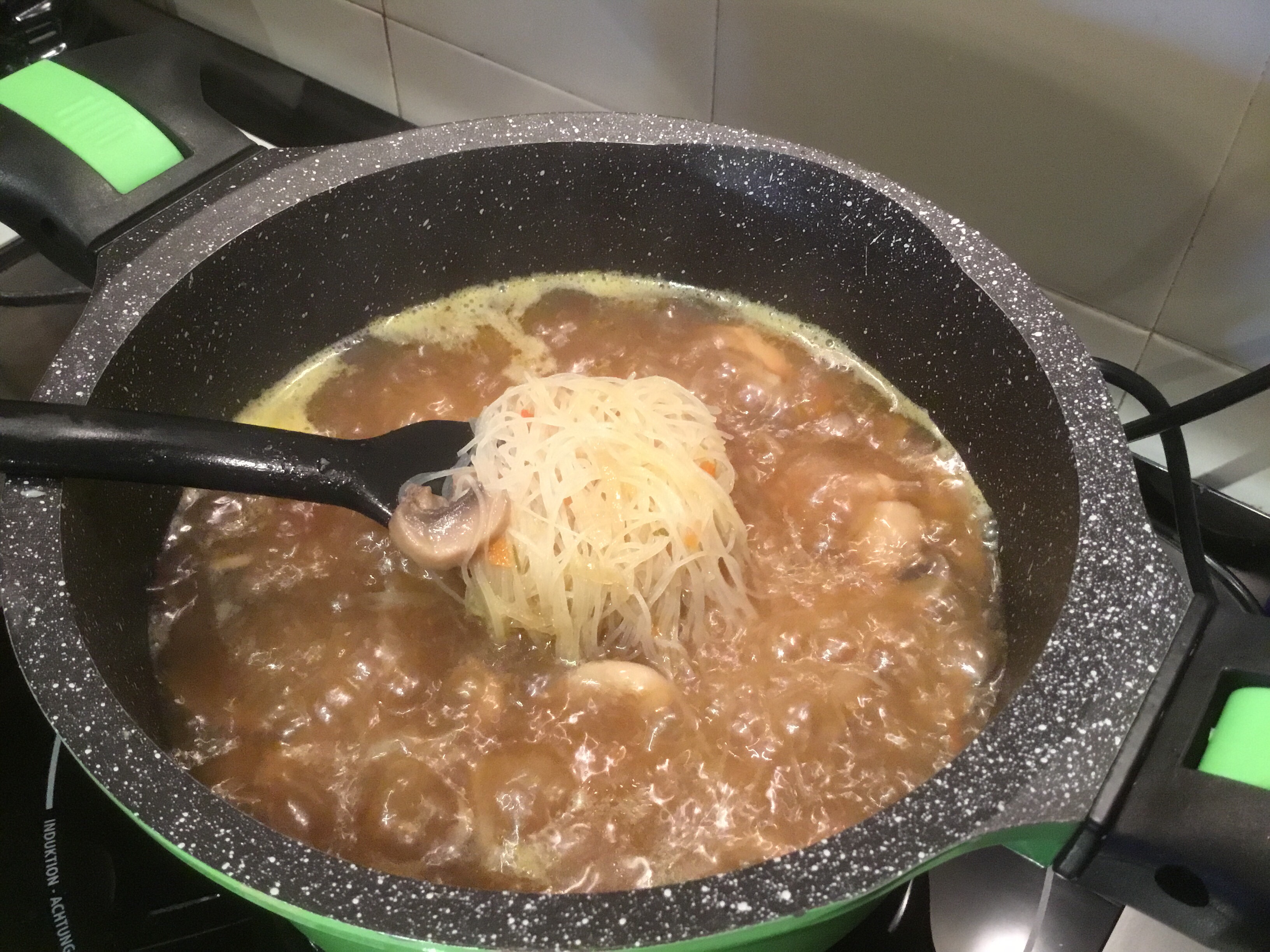 Dopo 20 minuti aggiungo gli spaghettini di riso che cuoceranno in circa 4 minuti