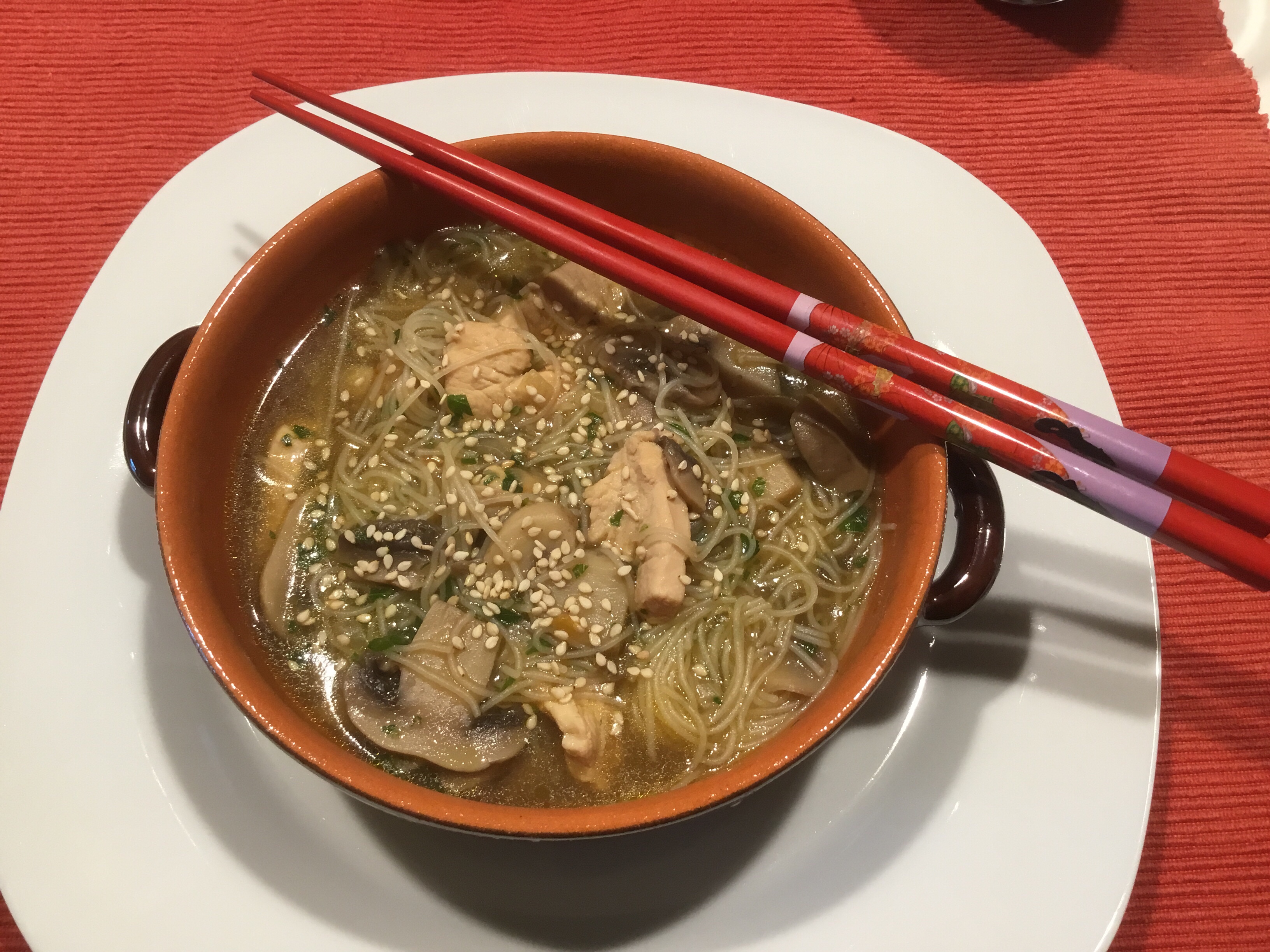 Ecco la vostra zuppa é pronta versatela in ciotole e servitela, i più bravi si possono cimentare con i bastoncini, ultimo tocco una spolverata di semi di sesamo bianchi o neri a piacere