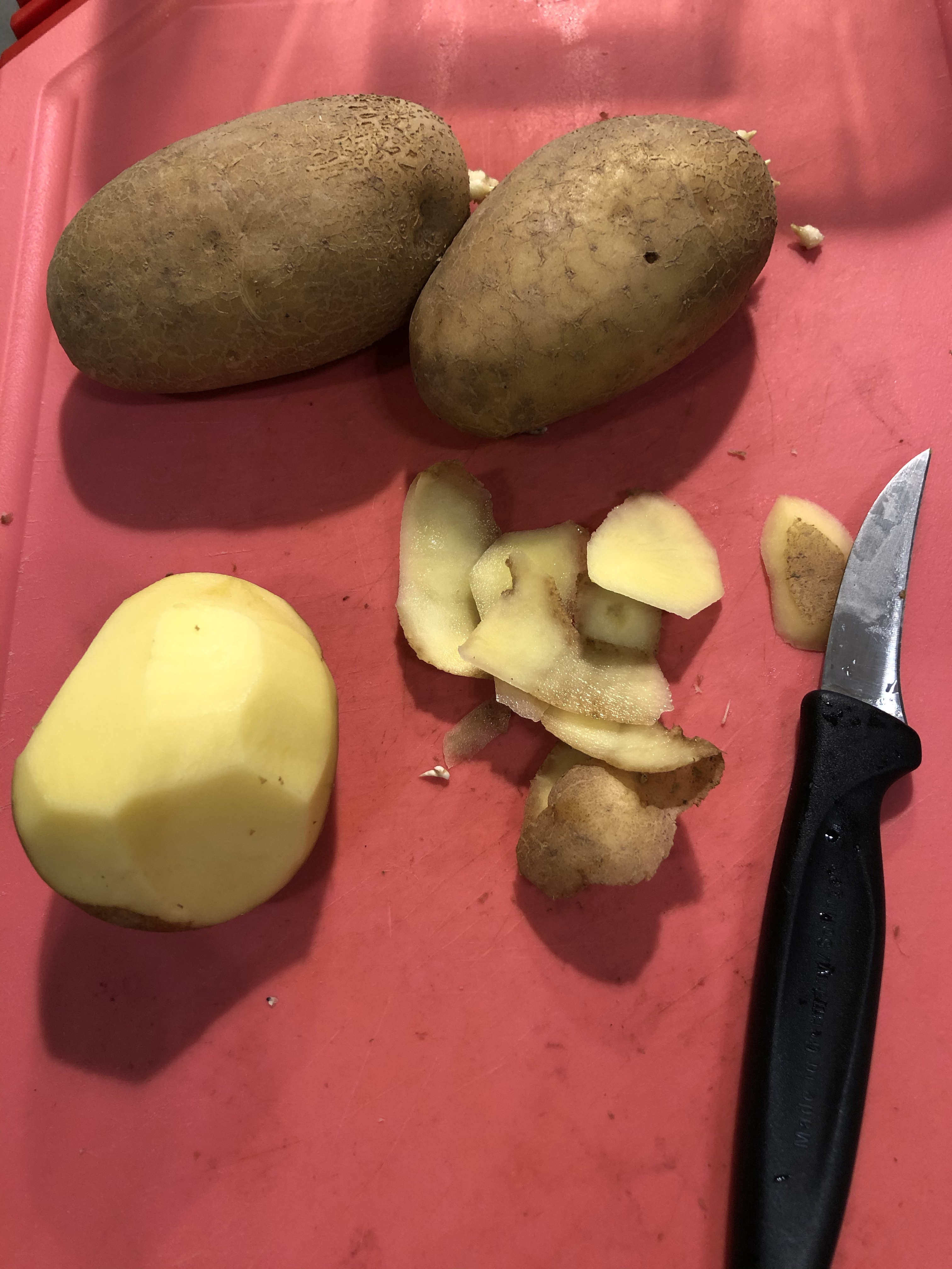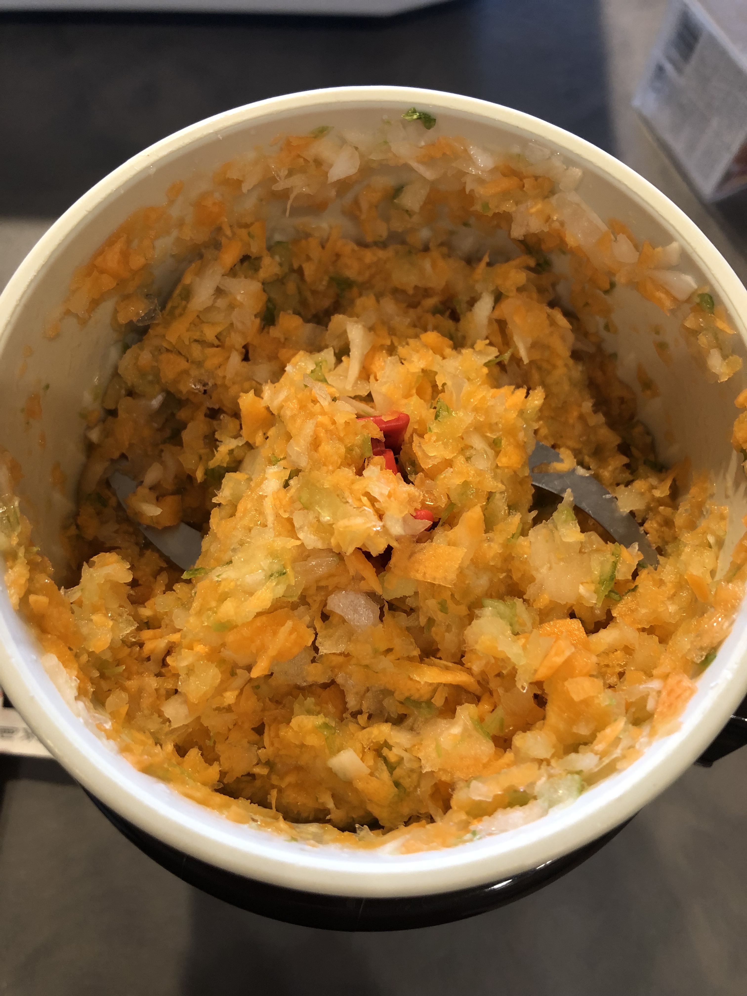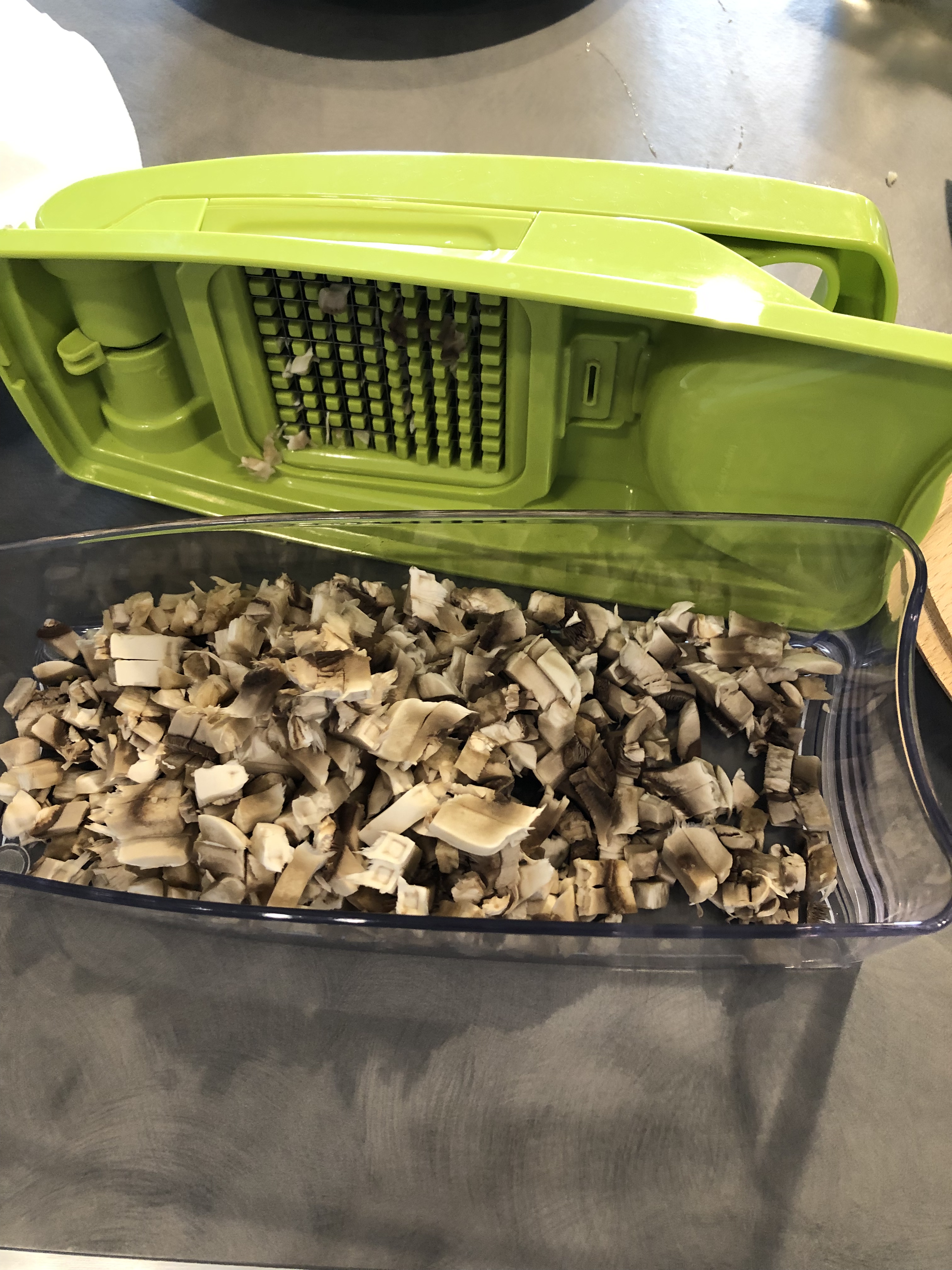 Taglio a cubetti molto piccoli, io ho questo attrezzo che é fantastico e velocizza il lavoro