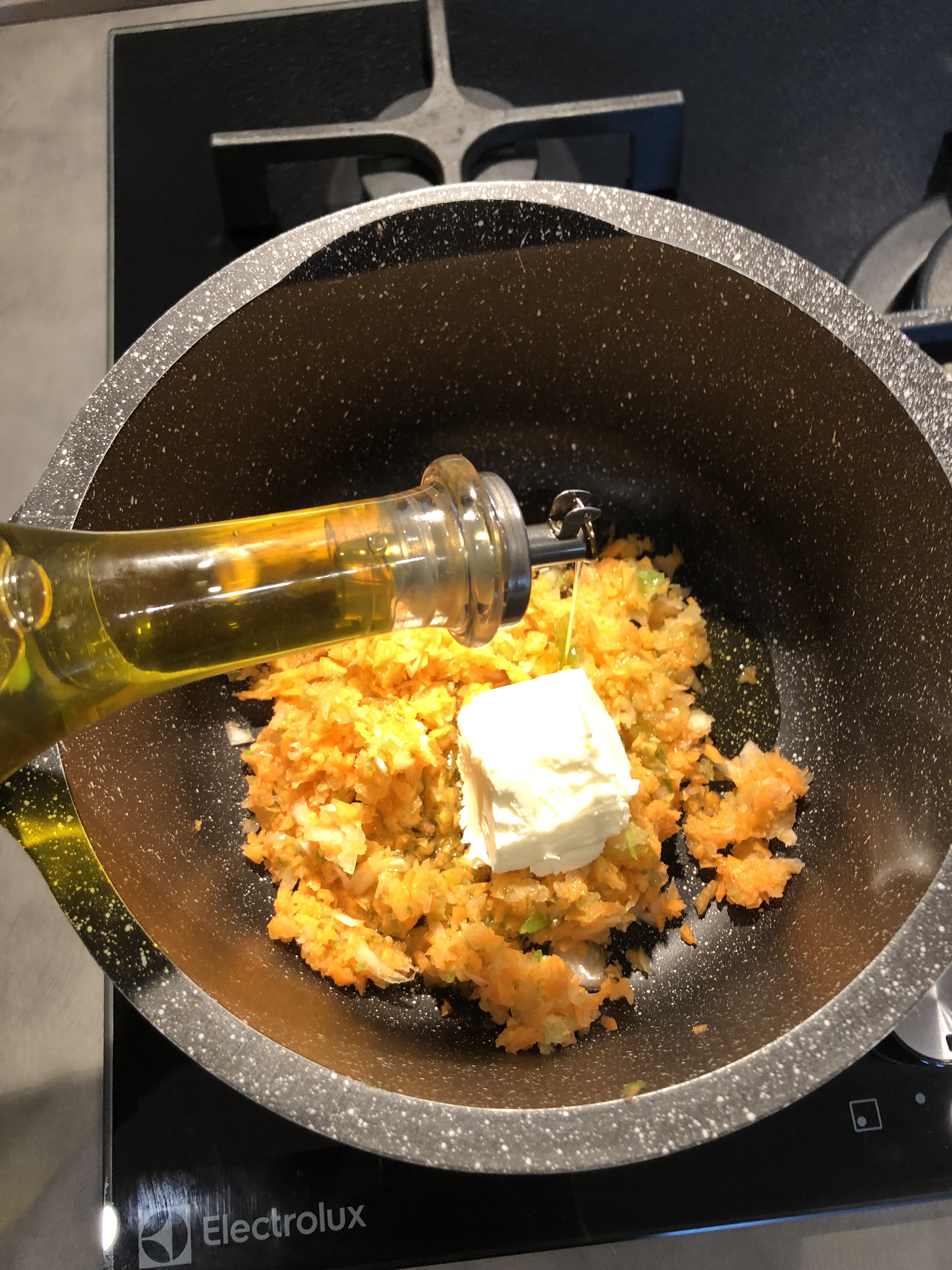 Le metto in una padella con un poco di olio extravergine e un pezzetto di burro