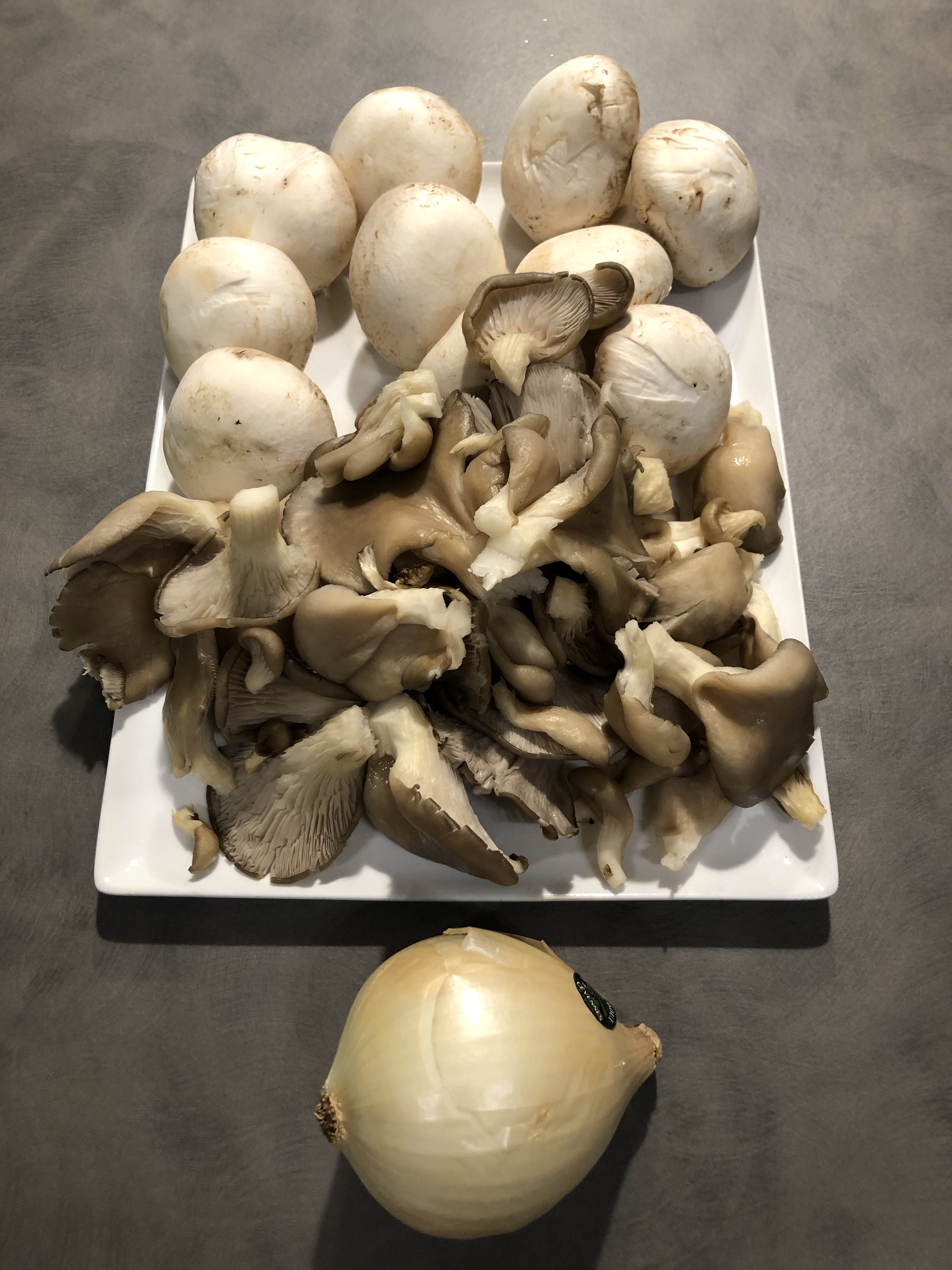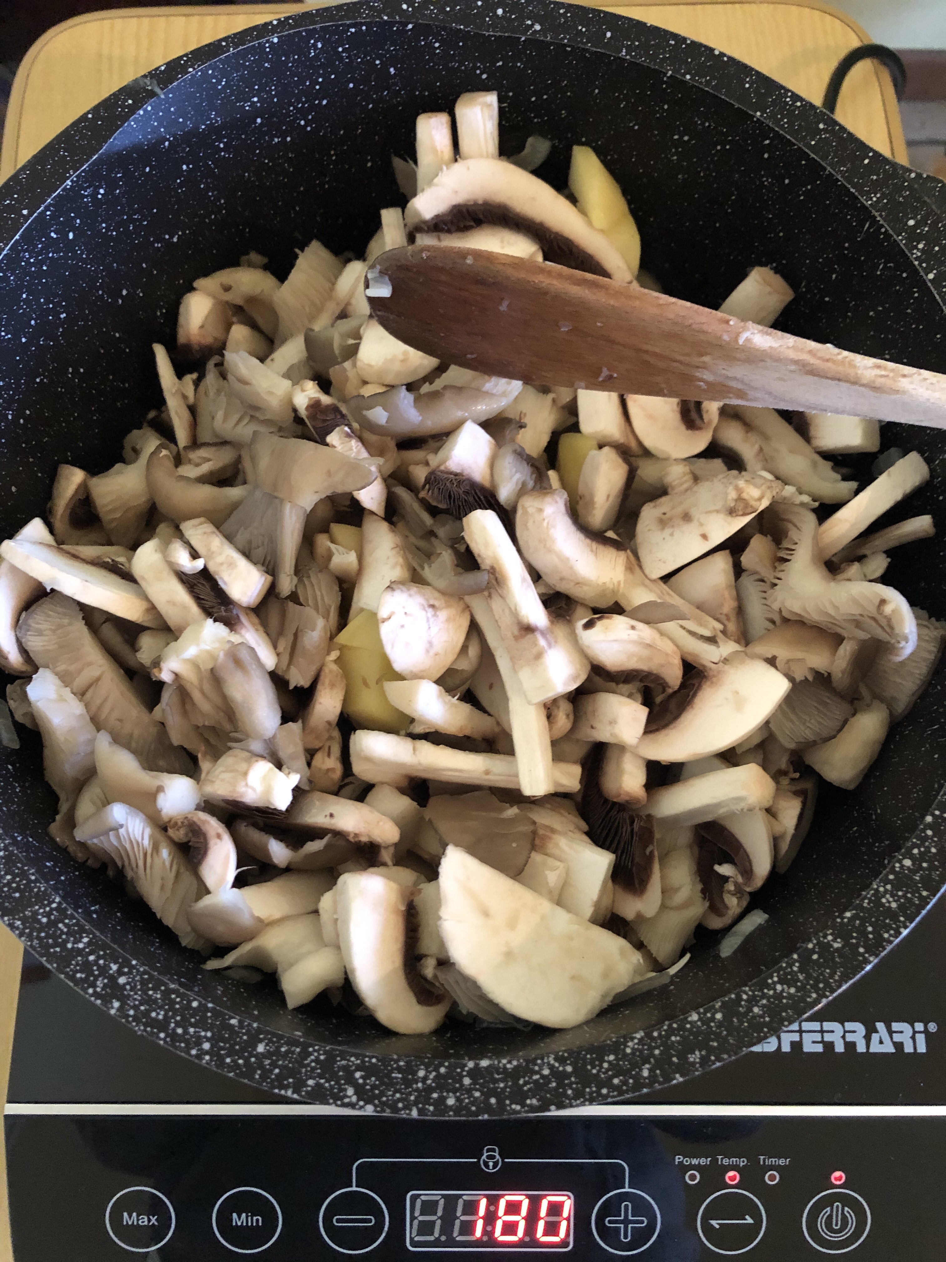 Verso in una pentola un goccio di olio, lo spicchio di aglio e lascio insaporire quindi verso i funghi
