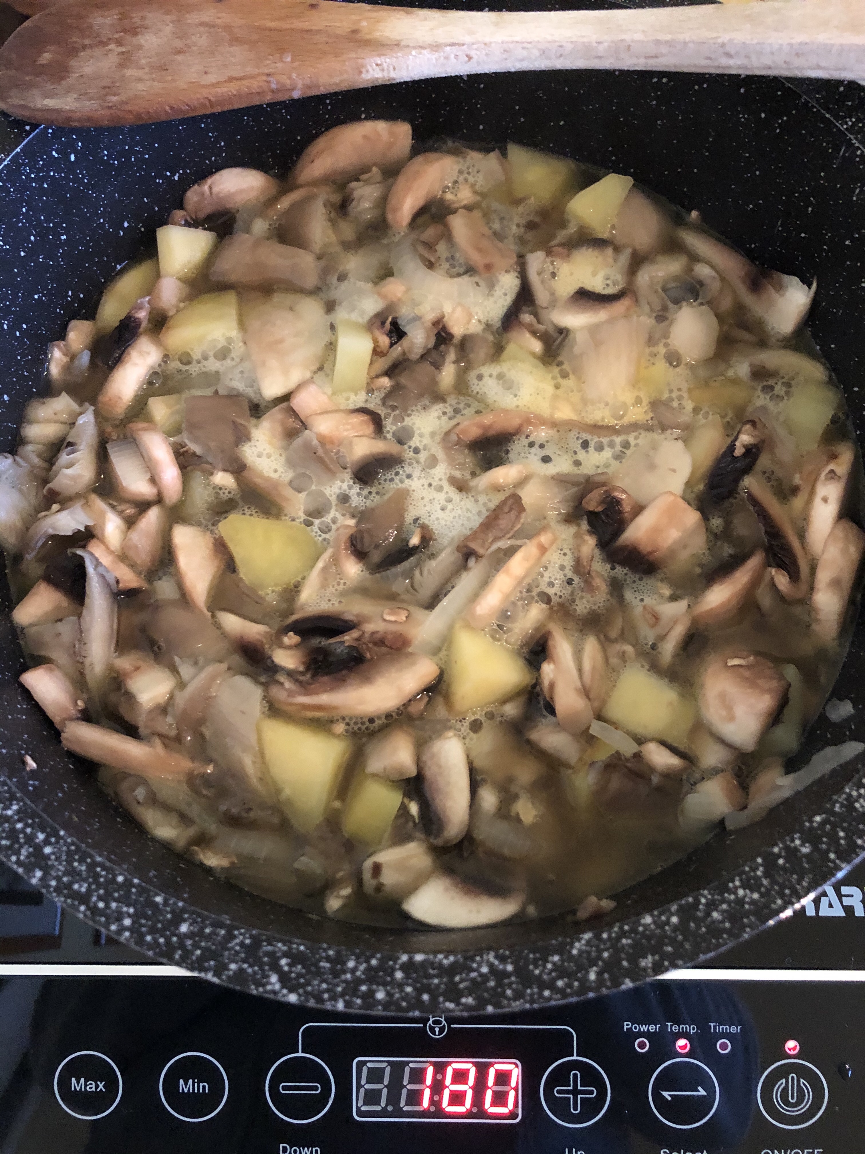 Copro con il brodo vegetale e lascio sobbollire con la pentola coperta per 20 minuti