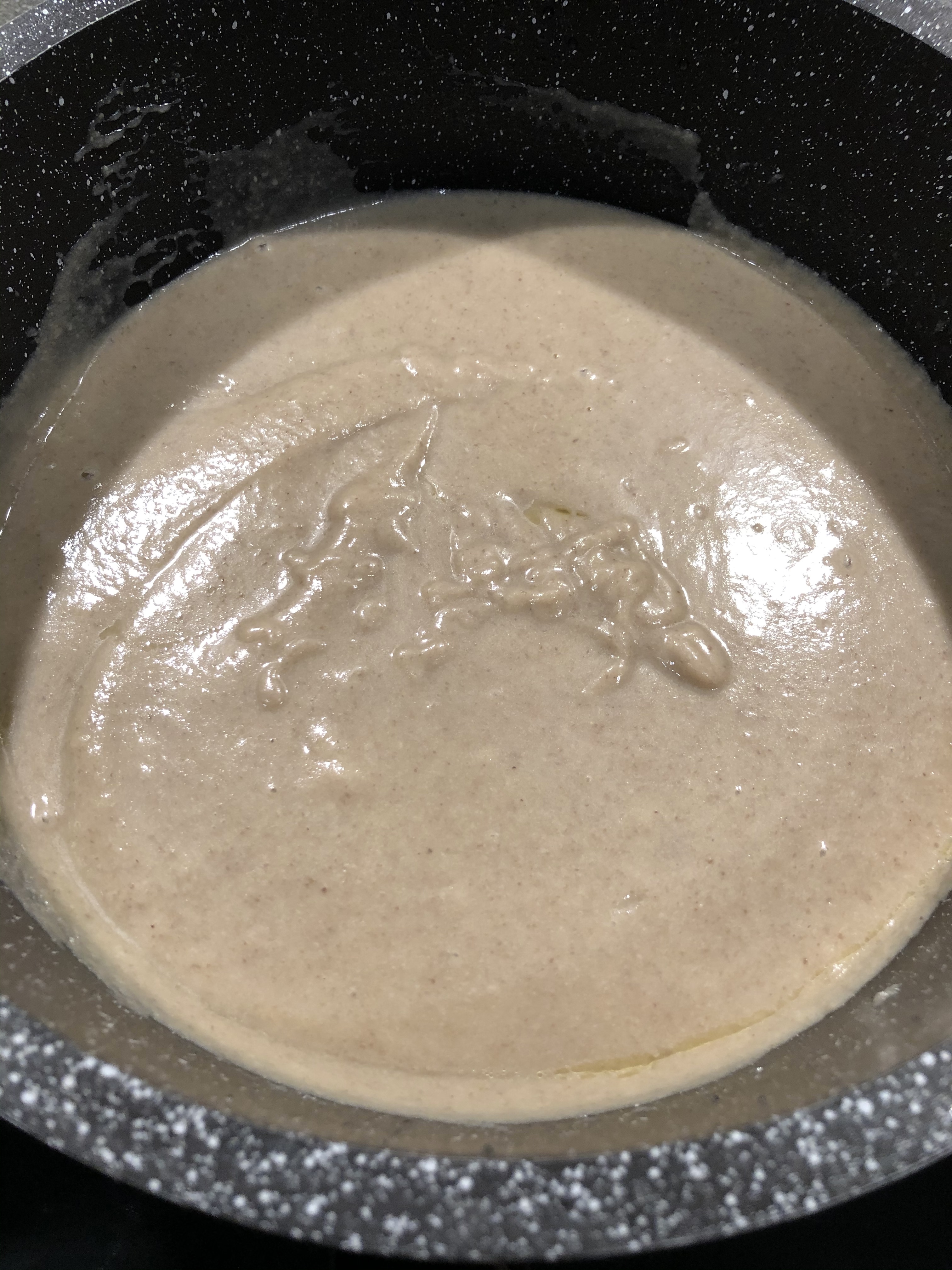 Metto un coperchio al tegame e lascio cuocere finché la zucca e le patate sono morbide, 30/40 minuti, a cottura ultimata frullo il tutto con un un minipimer, deve risultare una crema sostenuta non troppo liquida, regolo di sale e aggiungo una macinata di pepe
