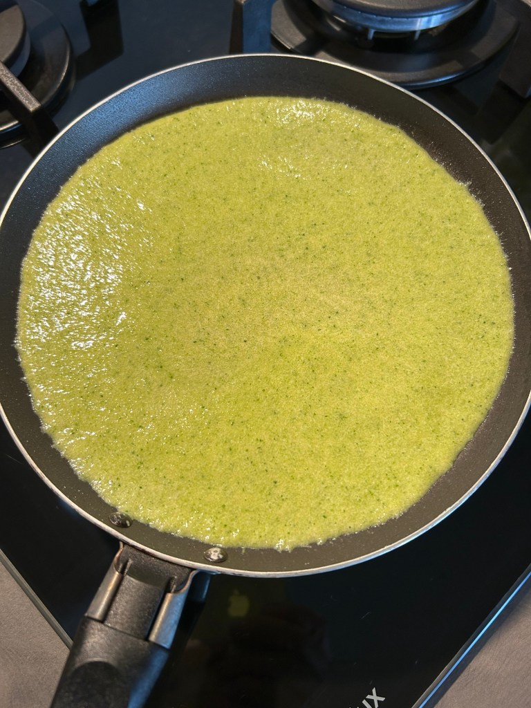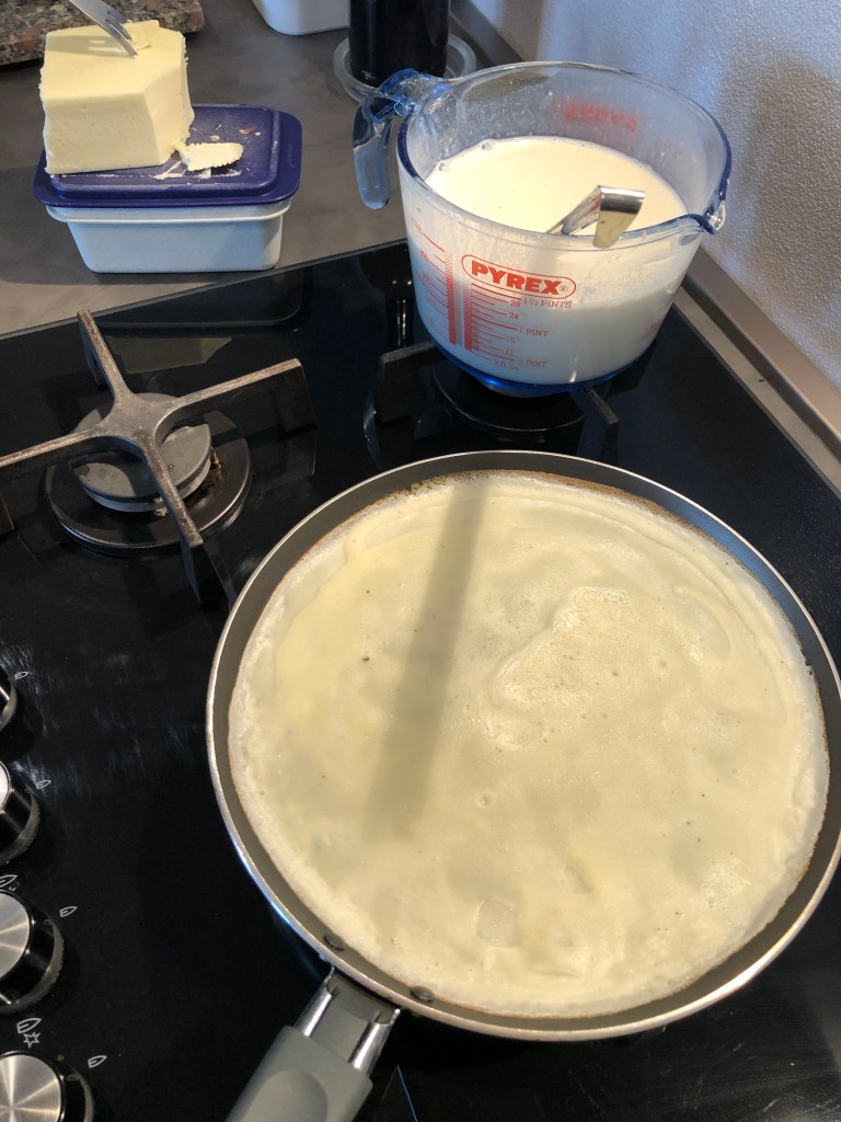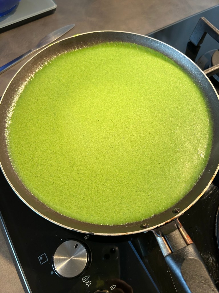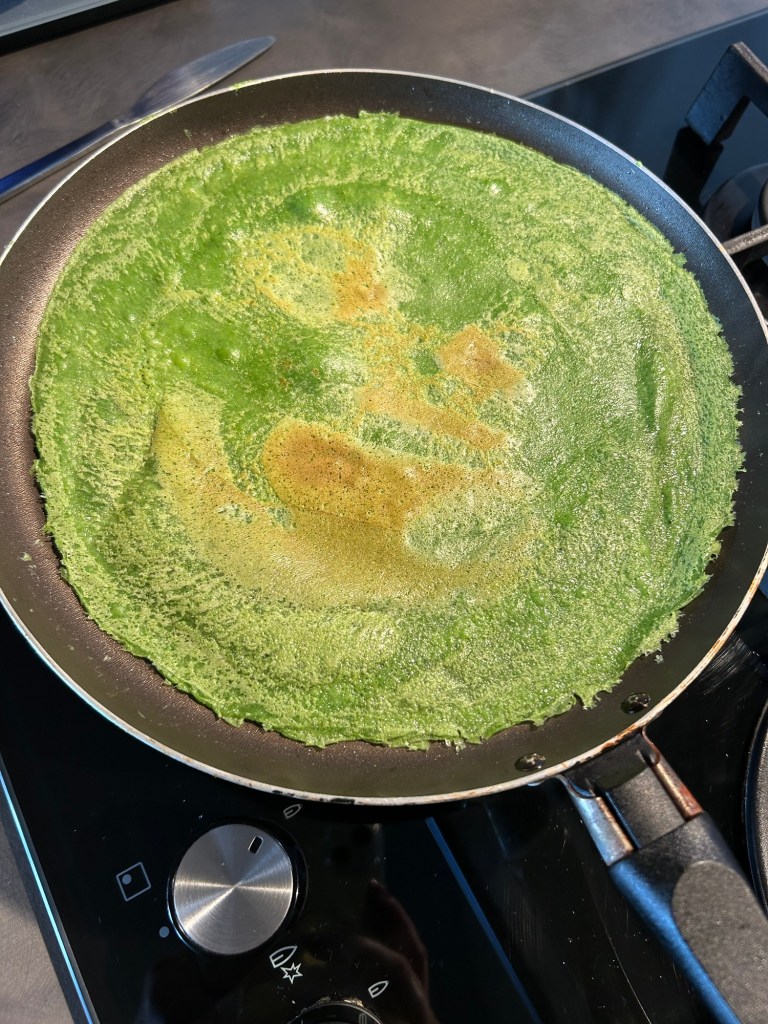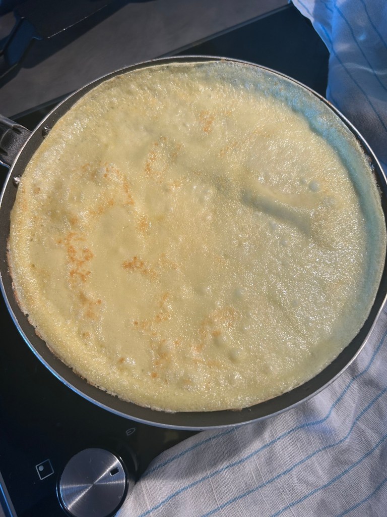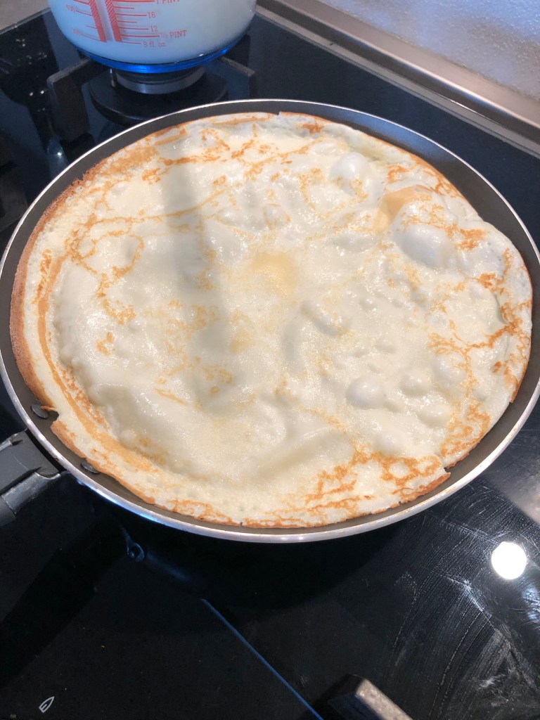 Dopo pochi minuti la crespella inizierà a sollevarsi e con una spatola la giro e lascio cuocere ancora qualche minuto