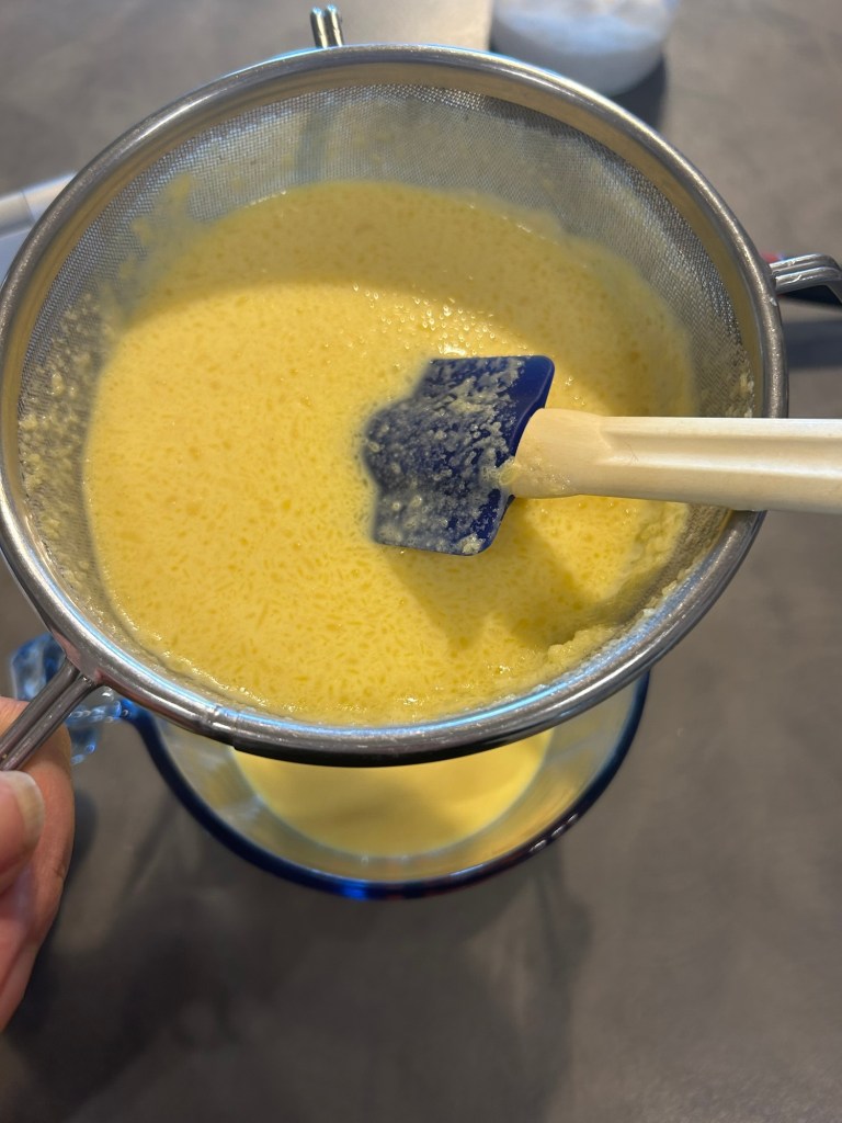 Quando la farina è ben amalgamata io per sicurezza filtro la pastella in un passino