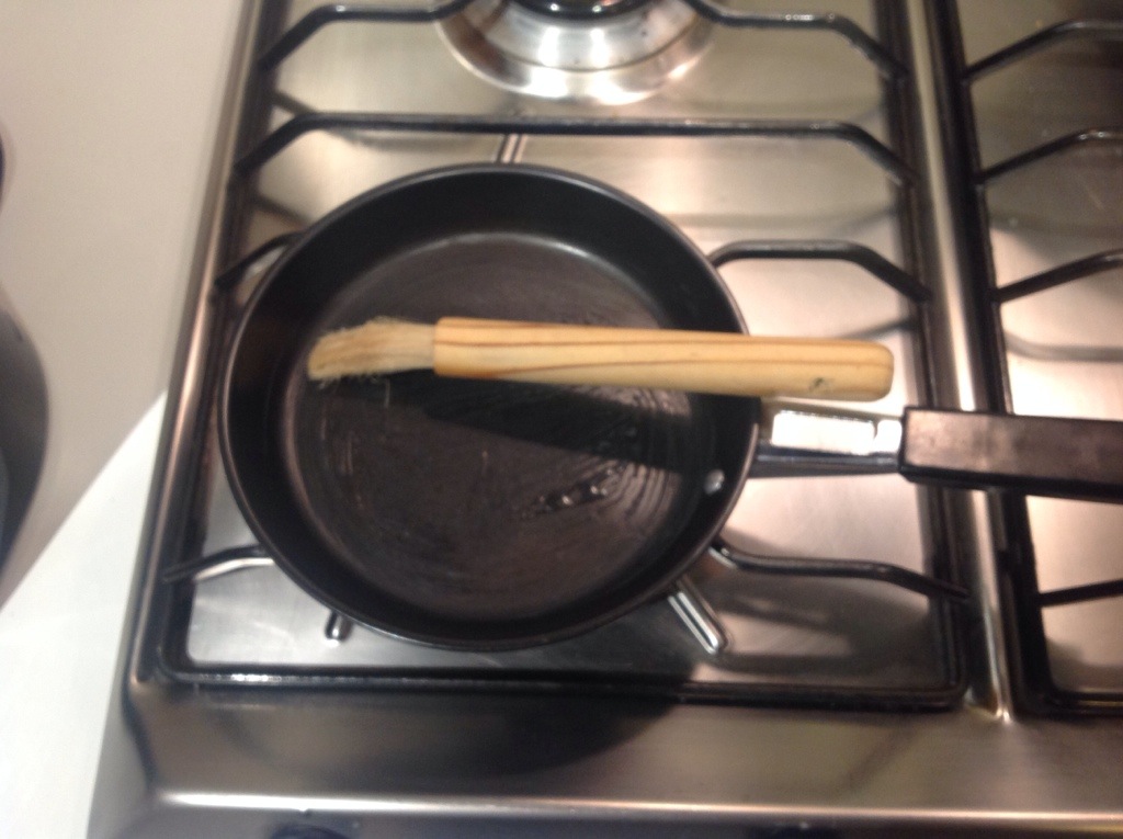 Scaldo il pentolino che è già unto di burro e verso un abbondante cucchiaio di pastella