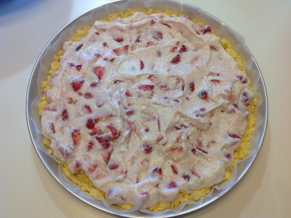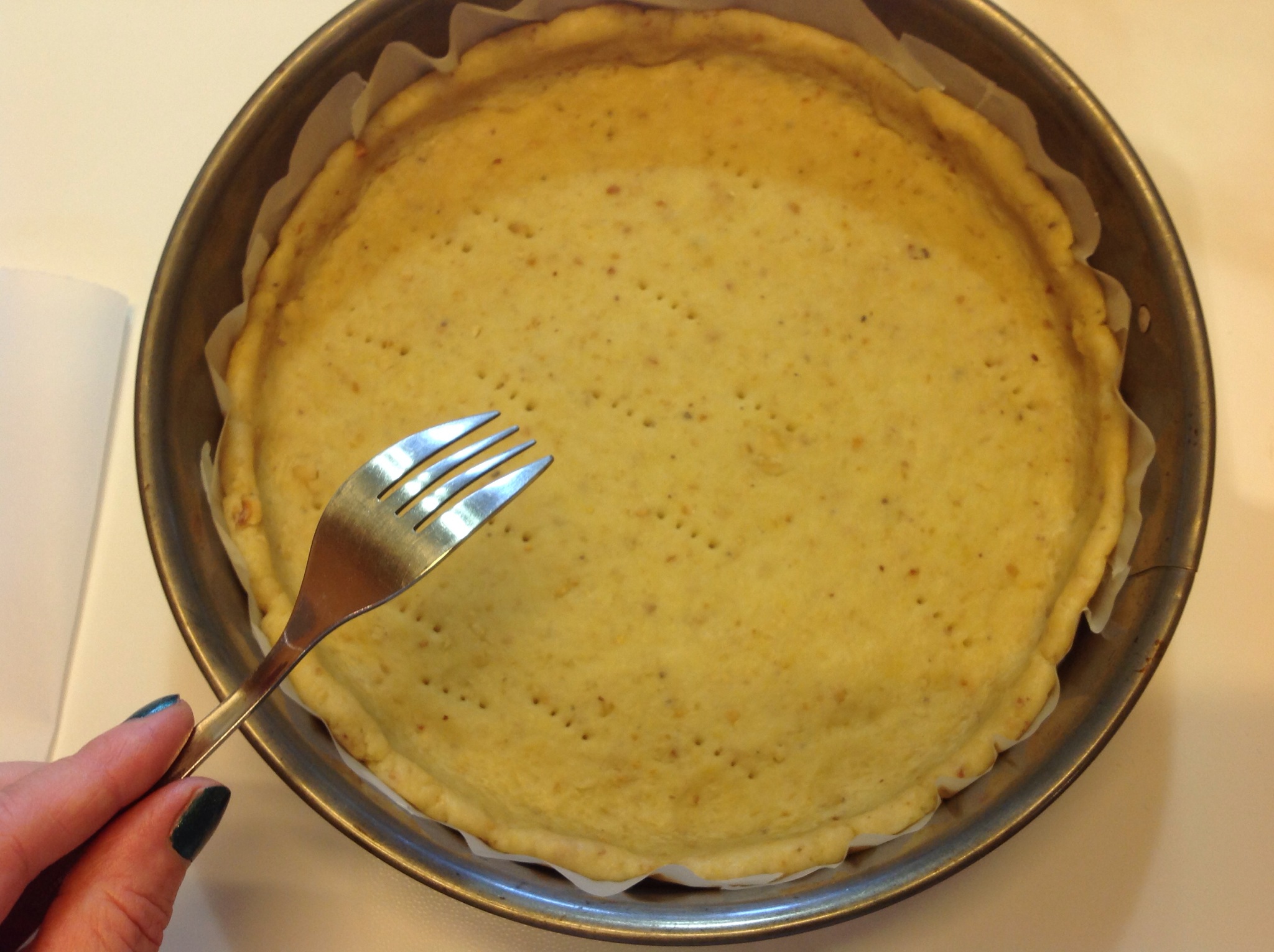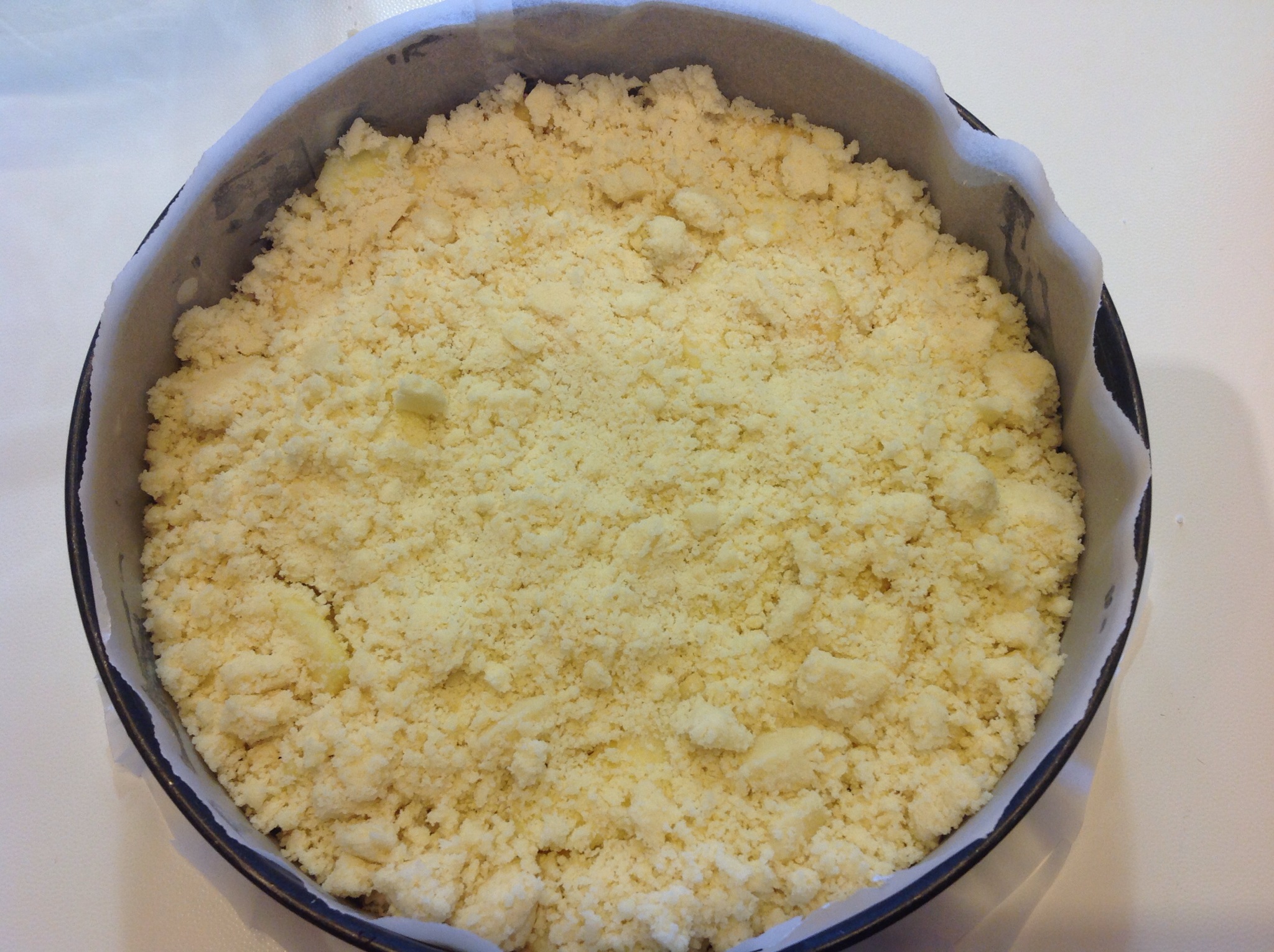 Sbriciolo il resto della pasta coprendo bene la superficie