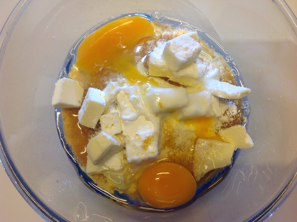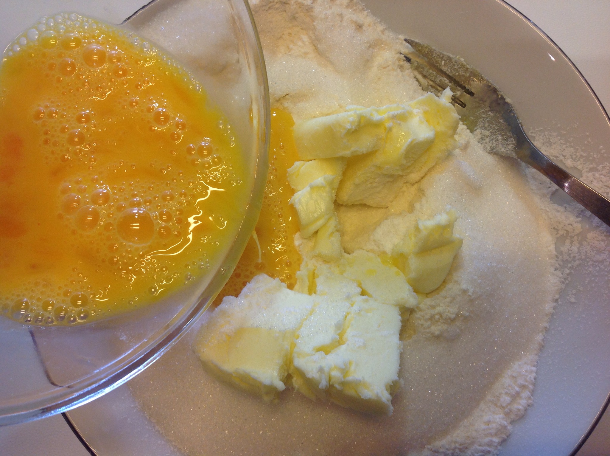 Aggiungo il burro a pezzetti e le due uova che ho sbattuto leggermente con una forchetta