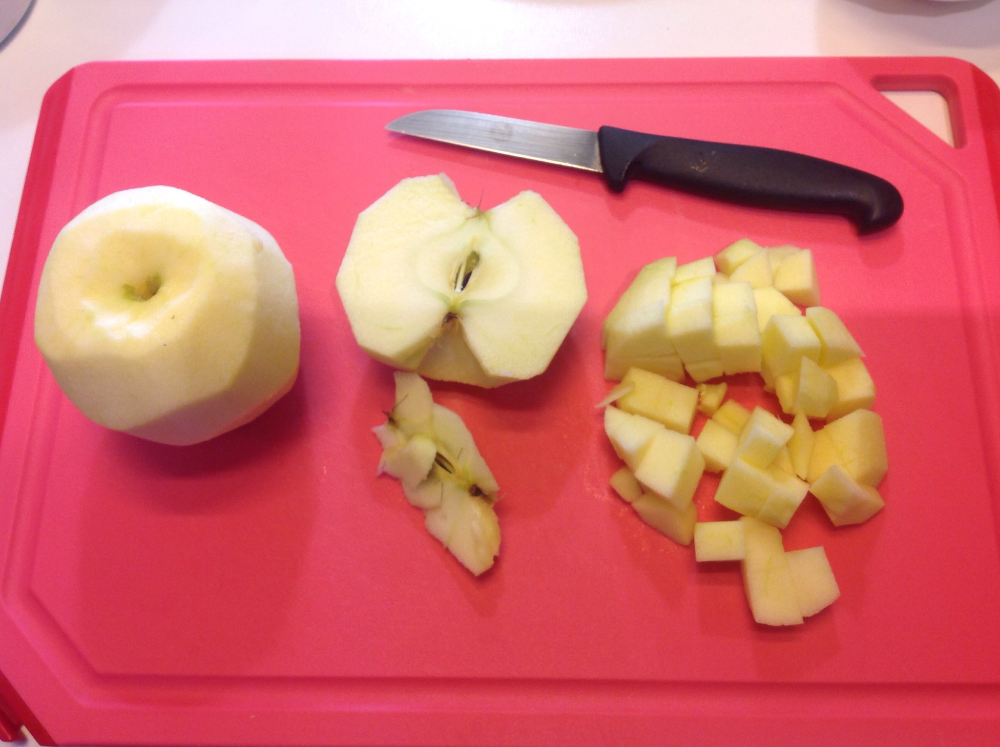 Sbuccio le mele, tolgo il torsolo e le taglio a cubetti