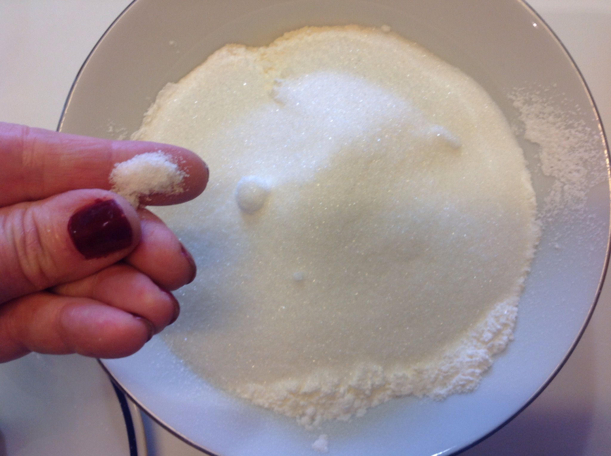 Mescolo lo zucchero di canna la cannella e la maizena