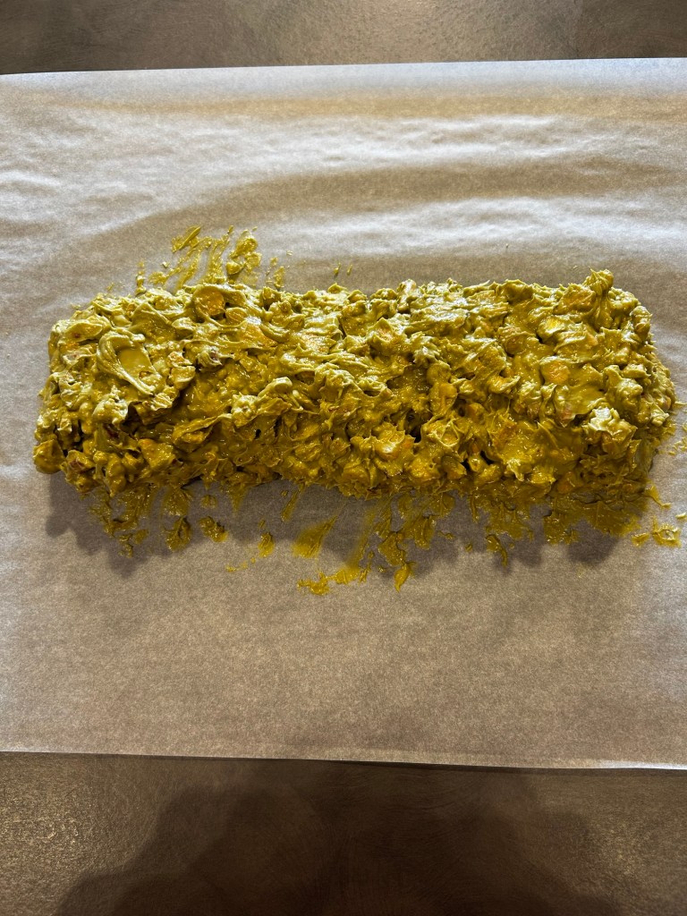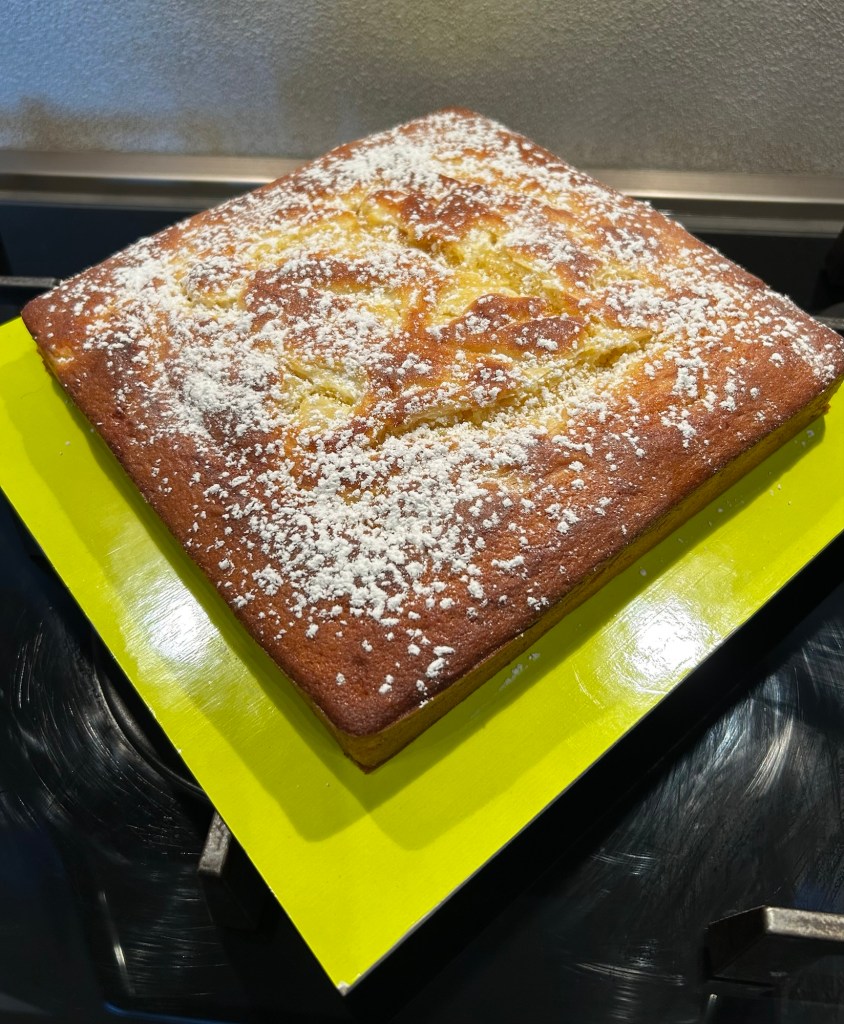 Lascio intiepidire, la tolgo dallo stampo e la taglio a quadrotti