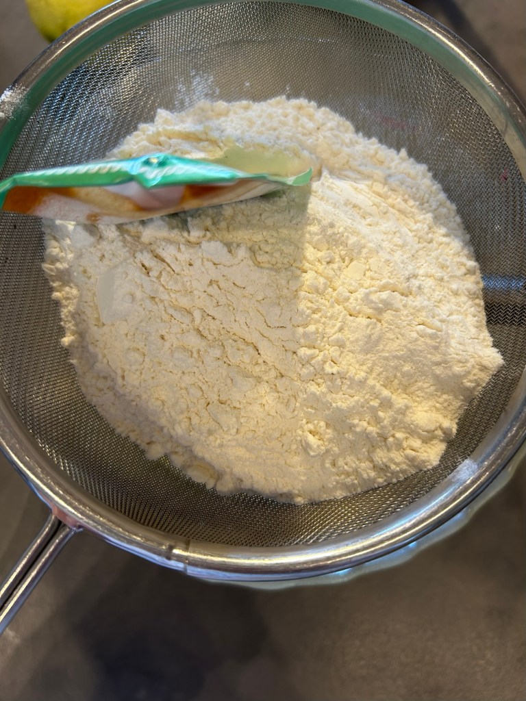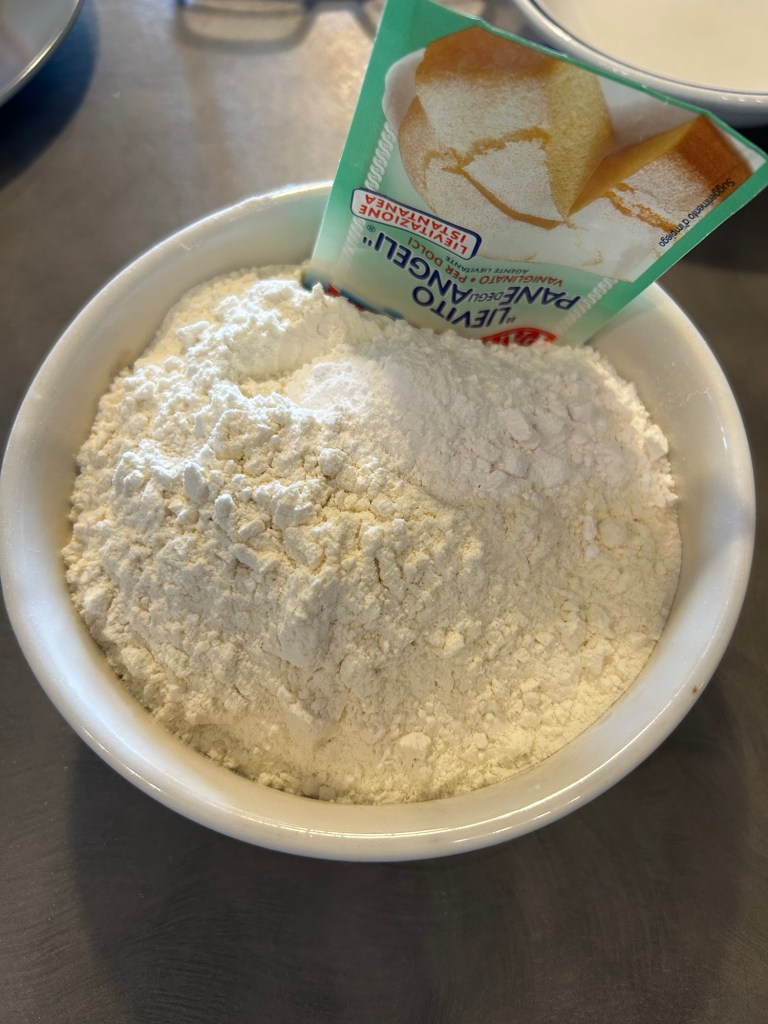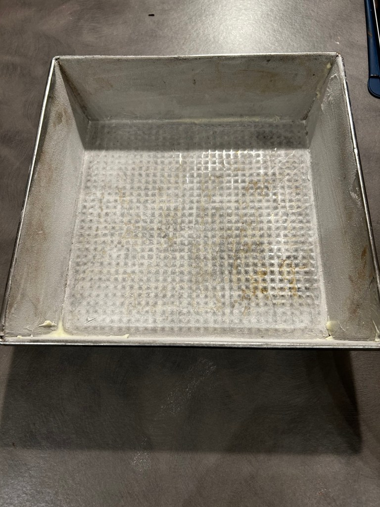 Imburro e spolvero con la farina di riso una teglia quadrata