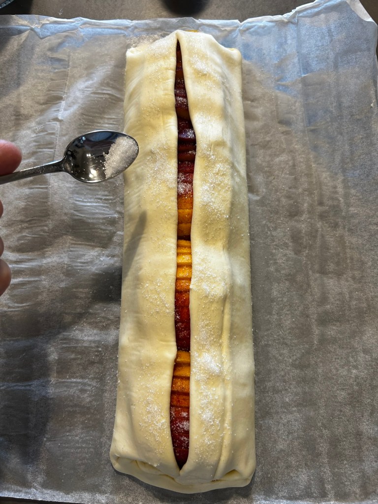 Verso il composto, livello e inserisco nel forno preriscaldato statico a 180 gradi per 30 minuti