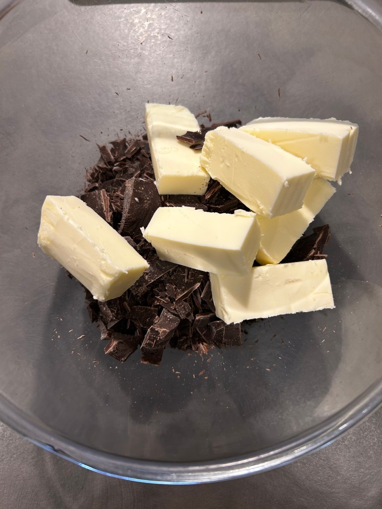 Trito a coltello il cioccolato e lo metto in una ciotola con il burro