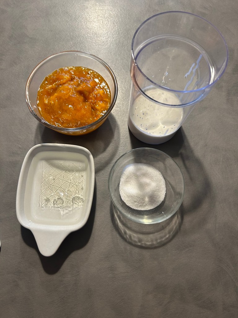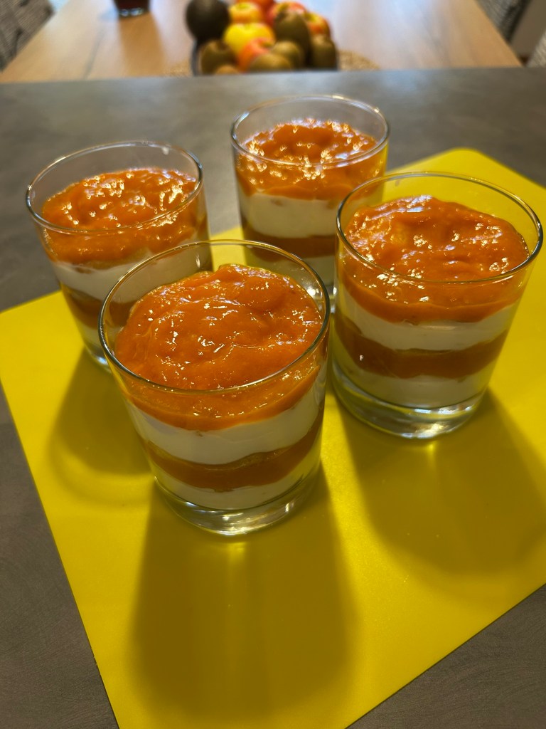 Un dolce veloce cremosissimo e profumato da preparare anche il giorno prima e conservato in frigorifero adatto per la sua freschezza con questo caldo, io ho utilizzato delle albicocche sciroppate che avevo preparato ma si possono utilizzare anche quelle in scatola, anche con le pesche oppure potete preparare una salsa con la frutta fresca a pezzi cotta e fatta addensare con un po’ di zucchero e limone