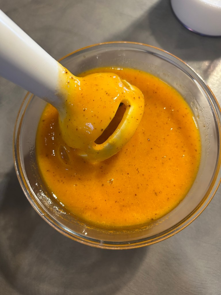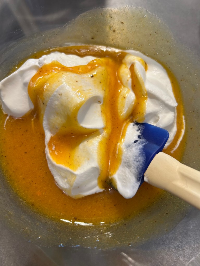 Riprendo la panna e ne aggiungo qualche cucchiaio alla crema di cachi e mescolo senza problemi