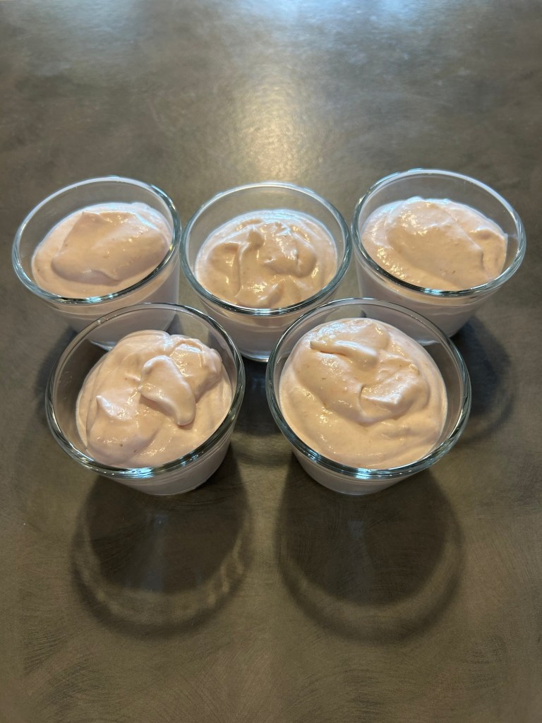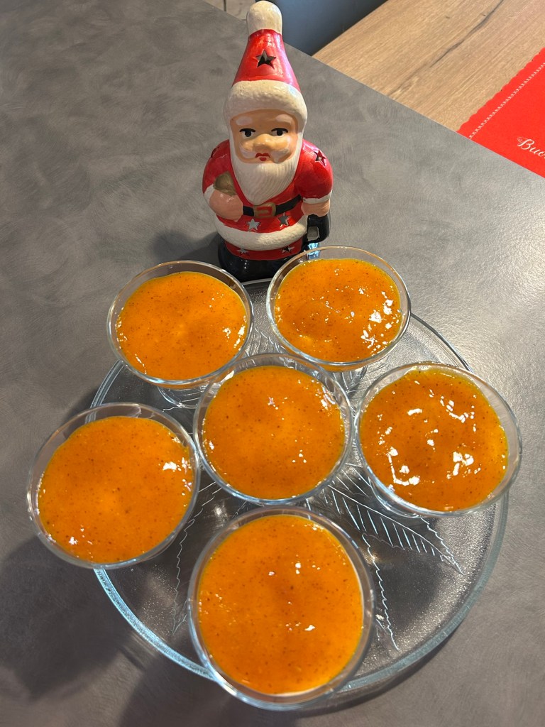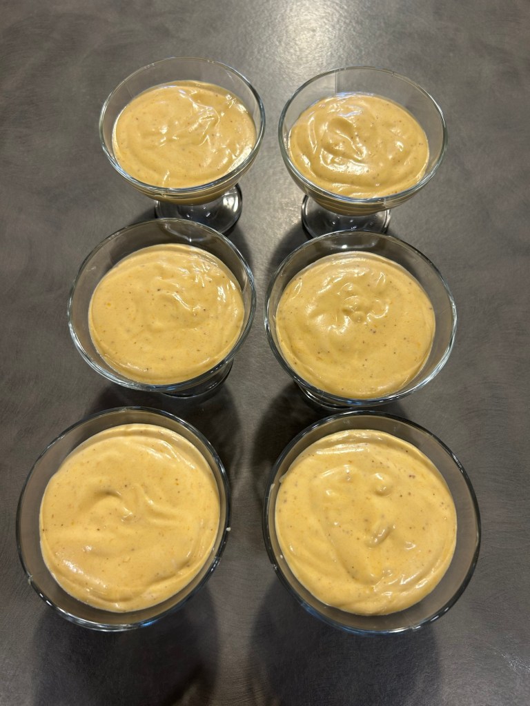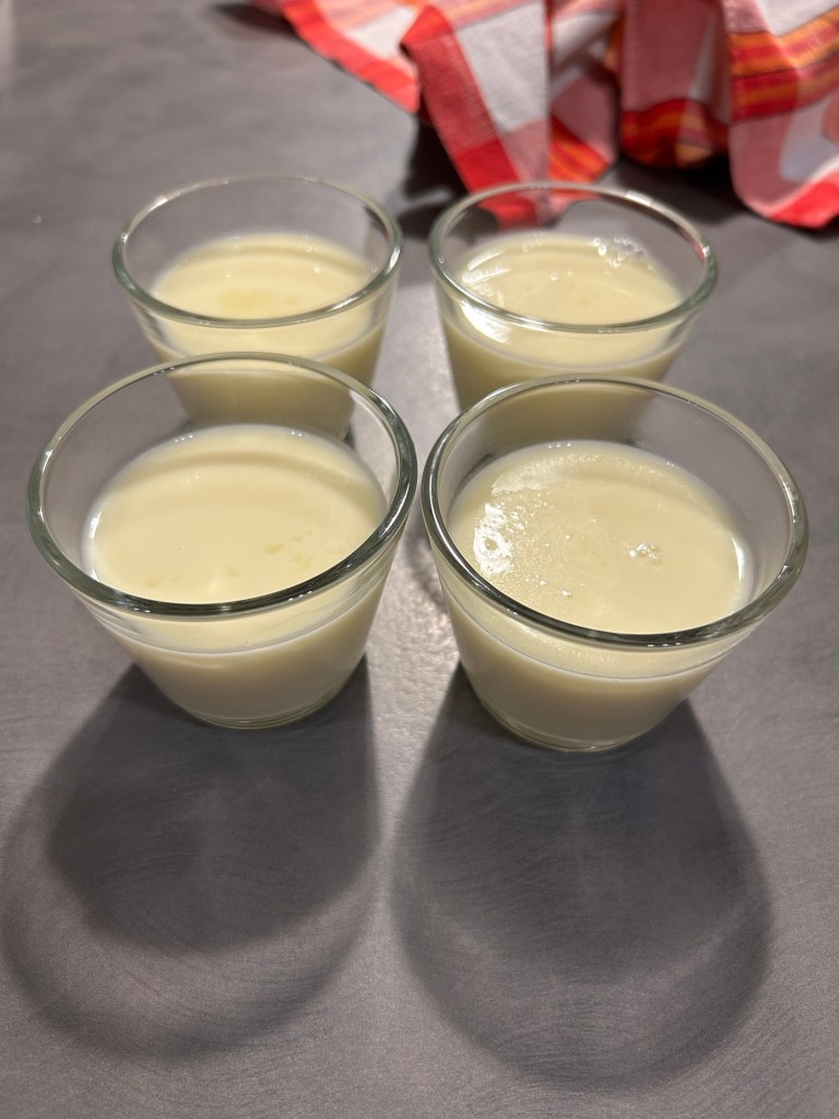 Verso in 4 bicchierini, lascio intiepidire poi li metto a rapprendere in frigorifero