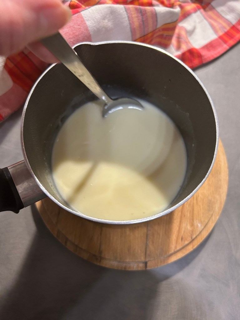 In un pentolino rompo l’uovo, aggiungo lo zucchero, lavoro con una frusta