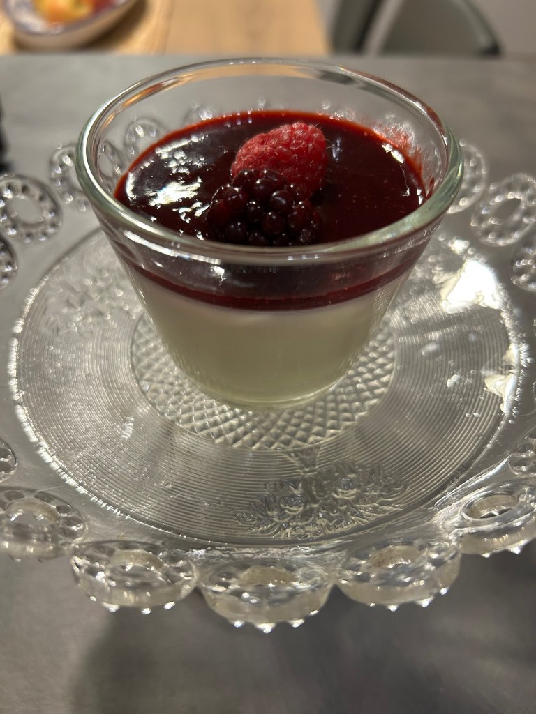 Tolgo i bicchierini della panna cotta ormai solidificata e suddivido la coulis