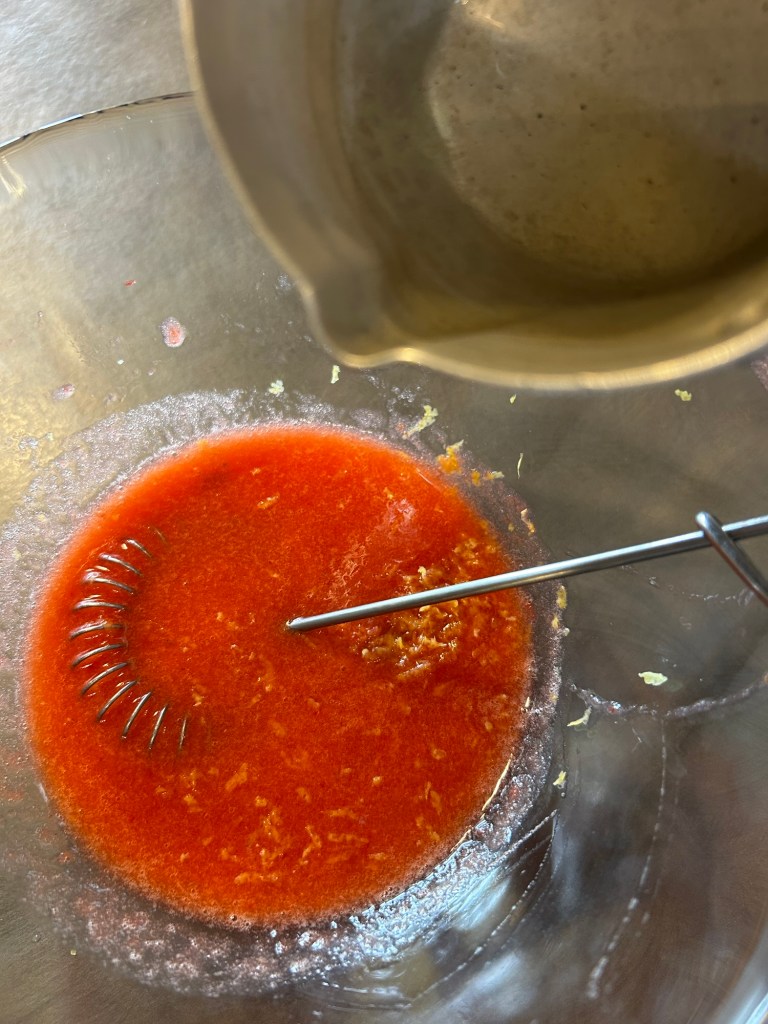 Mescolo bene montando leggermente con la frusta, aggiungo l’estratto di vaniglia