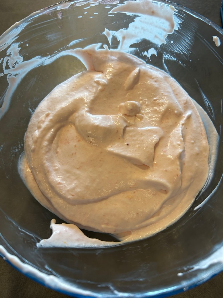 Aggiungo poi tutto il resto mescolando delicatamente dal basso verso l’alto