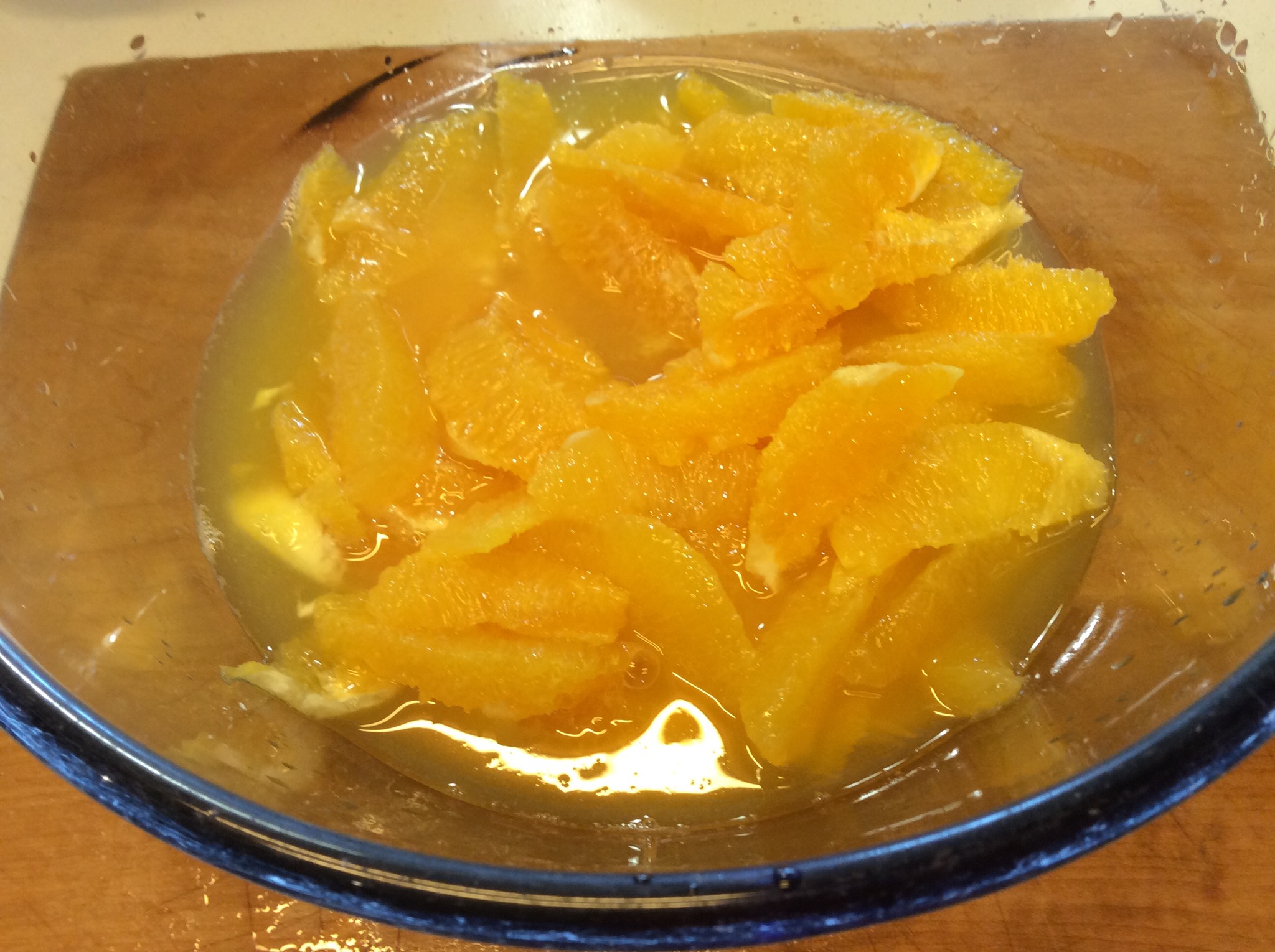 Mescolo bene e unisco la stecca di cannella spaccata in 2/3 pezzi, copro con la pellicola e ripongo in frigorifero per una notte, mescolando ogni tanto