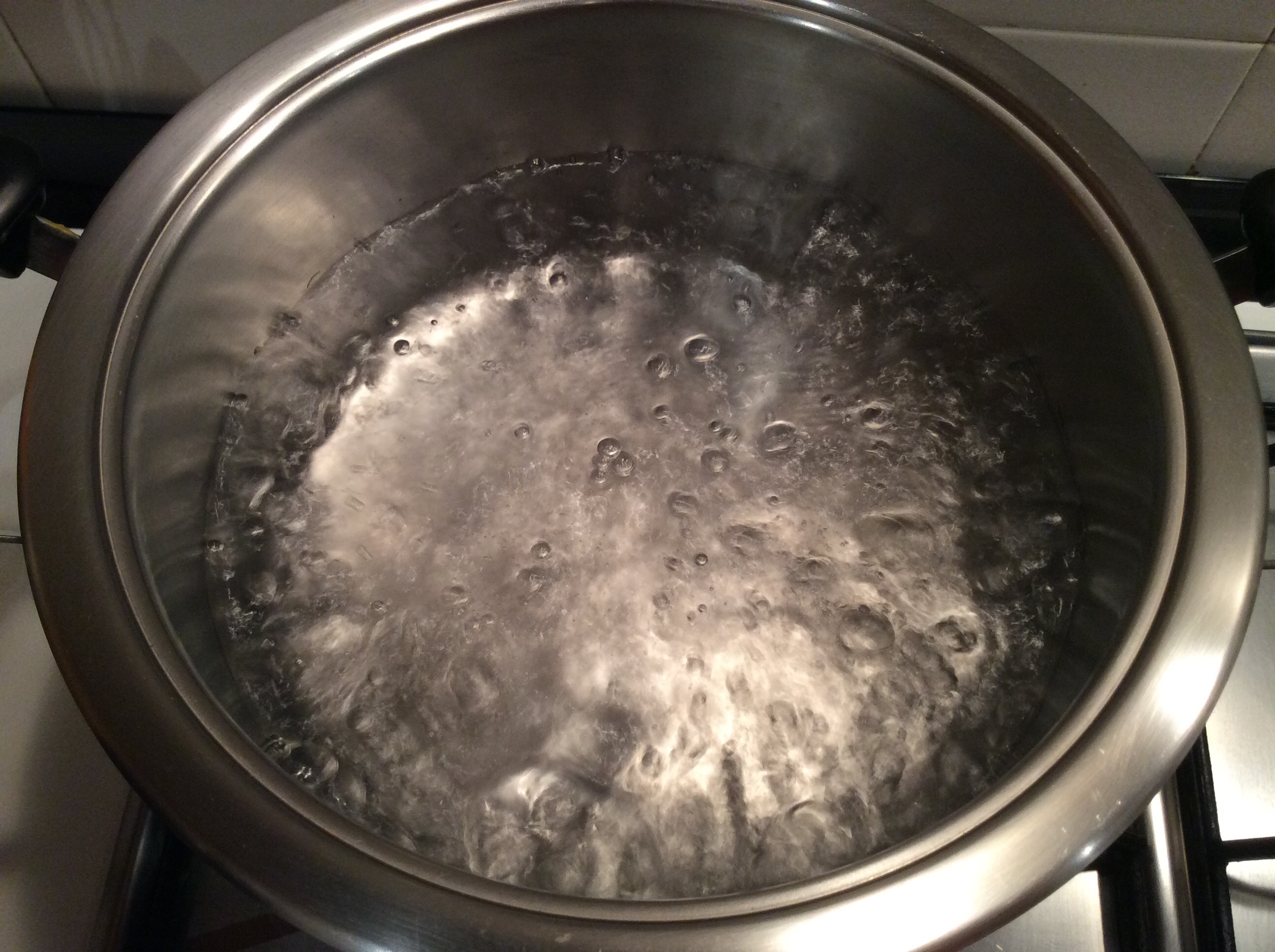 Sterilizzo in acqua bollente i vasetti, verso la mostarda
