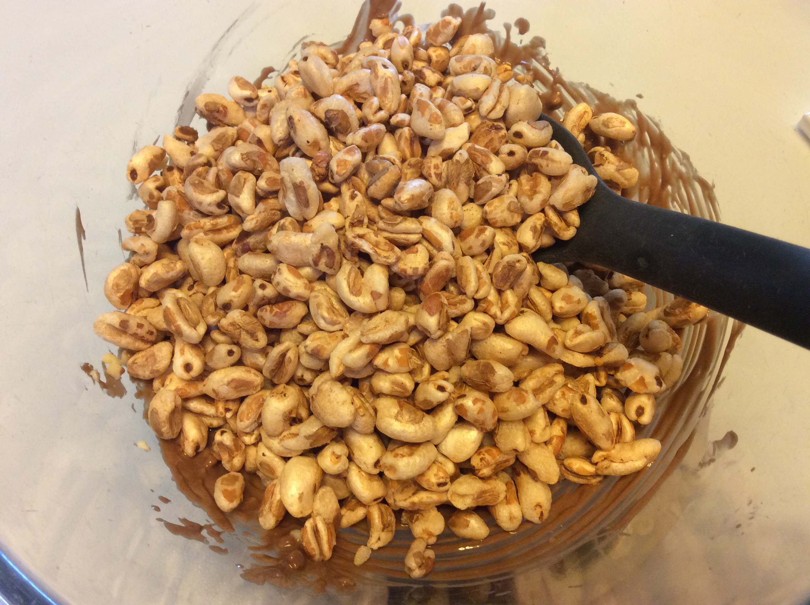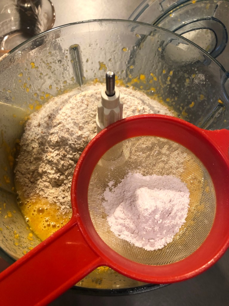 Aggiungo la metà del suo peso di zucchero, il pepe rosa in grani