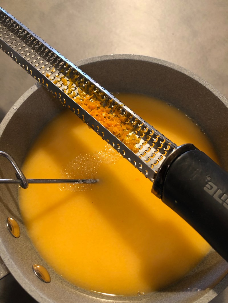 Filtro lo sciroppo e lo verso in una padella tenendo da parte la zucca