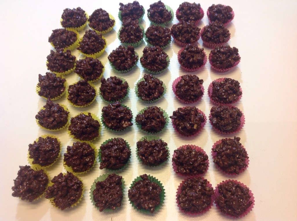 Mescolare il cioccolato con il composto e aiutandosi con 2 cucchiaini riempire dei piccoli pirottini oppure fate dei mucchietti sulla carta forno