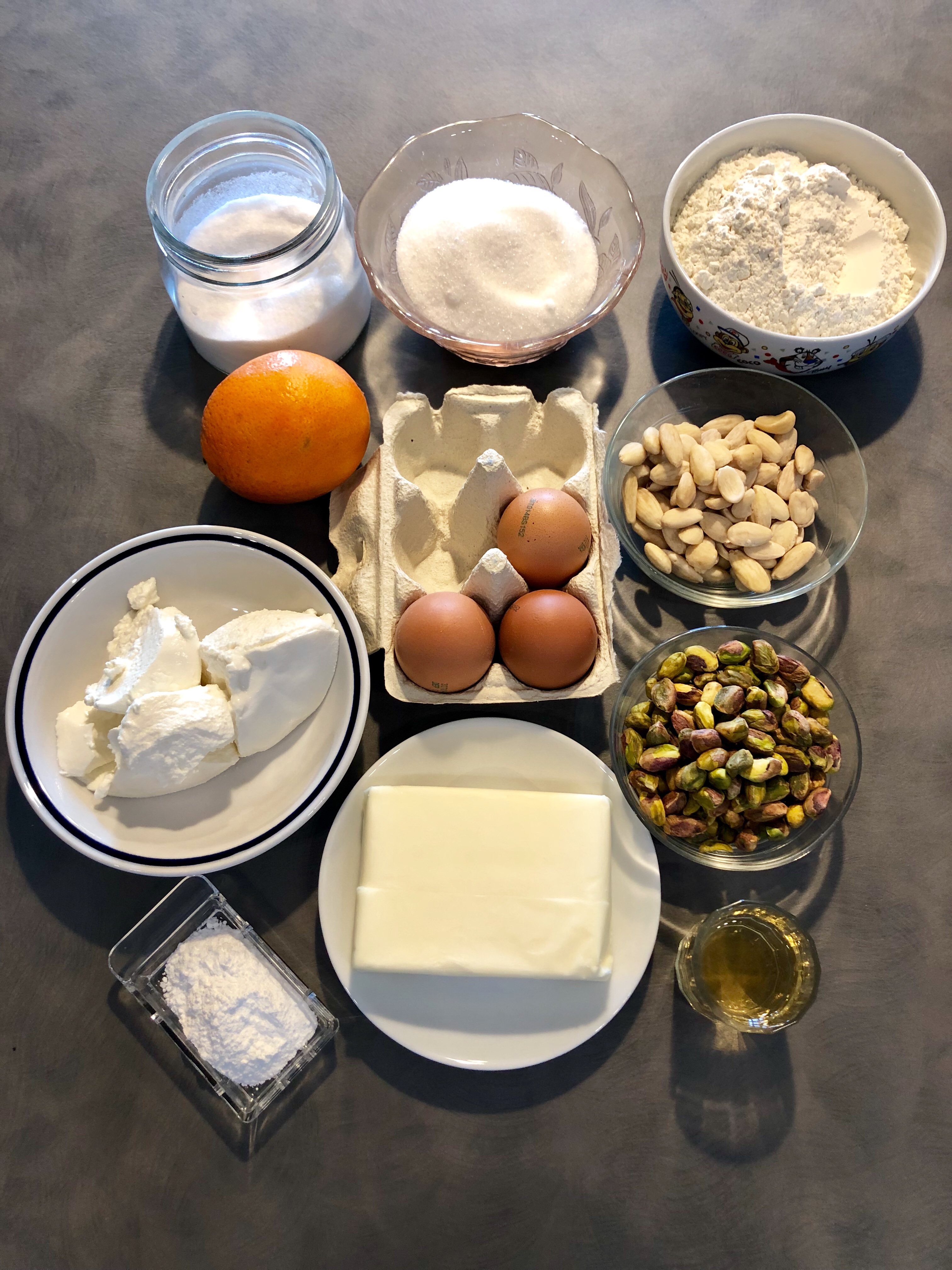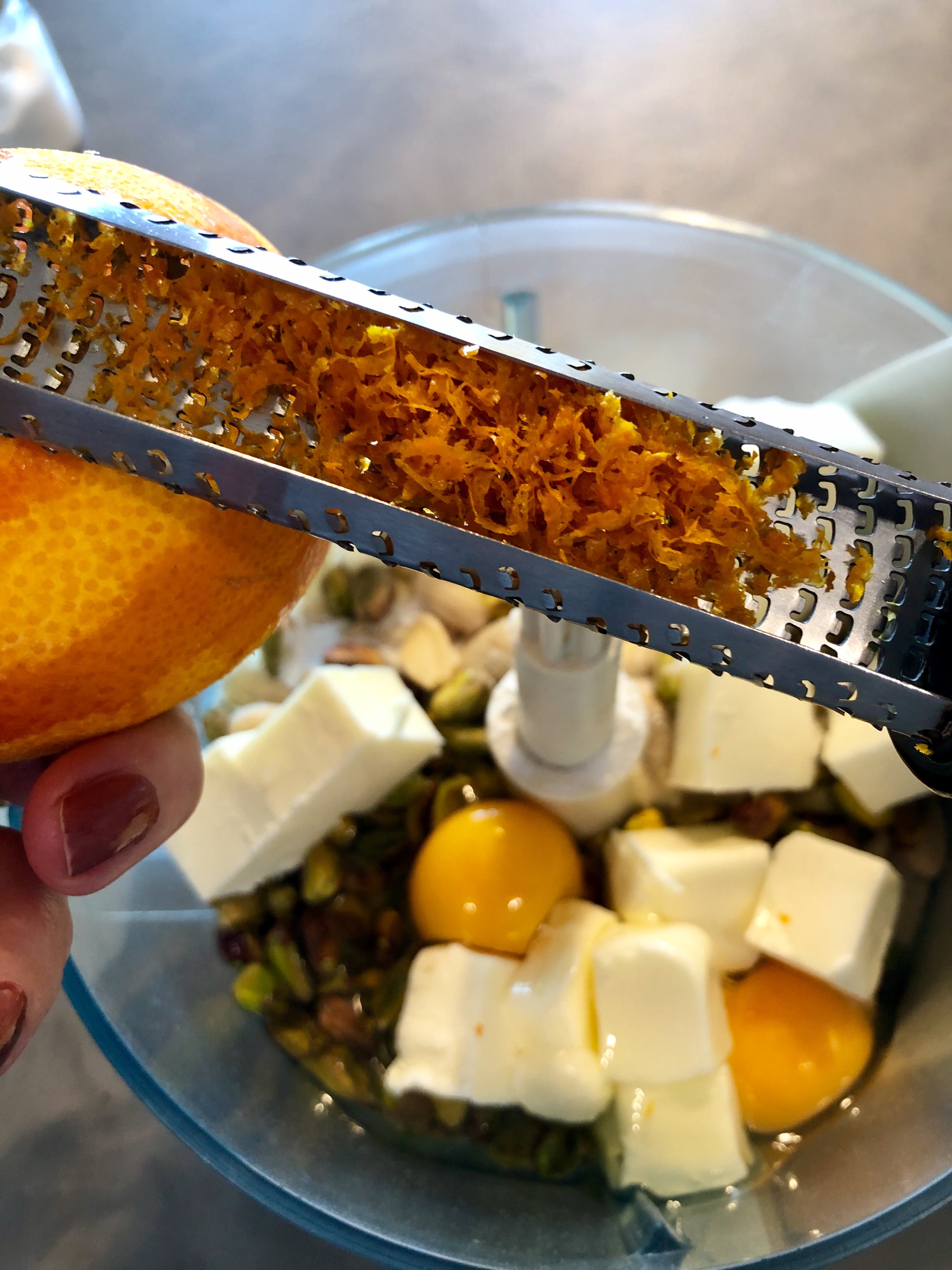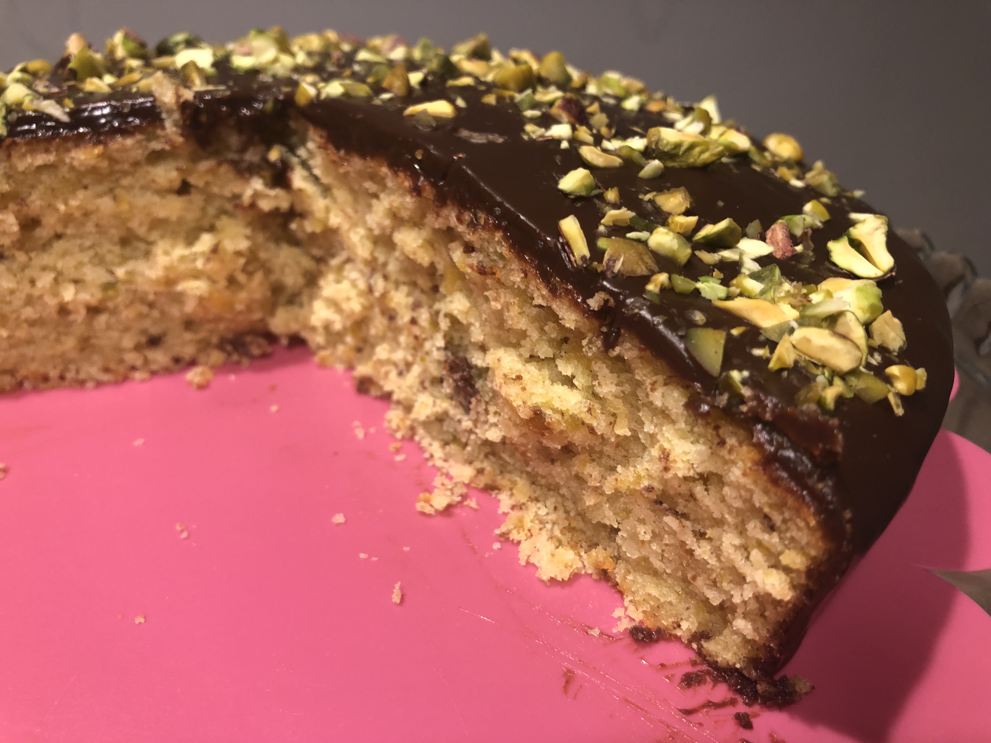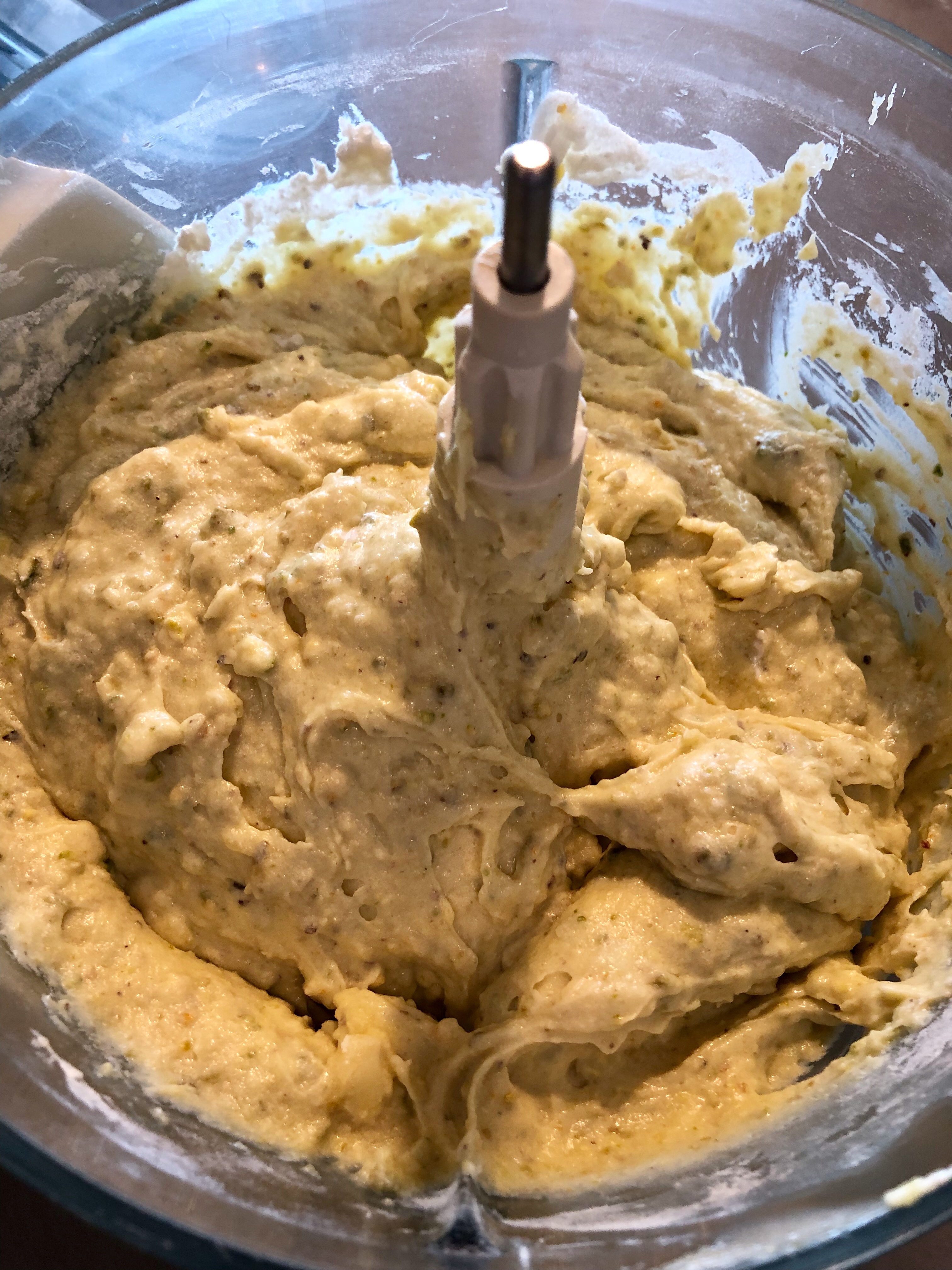 Trito grossolanamente i pistacchi che ho tenuto da parte e li distribuisco sulla superficie