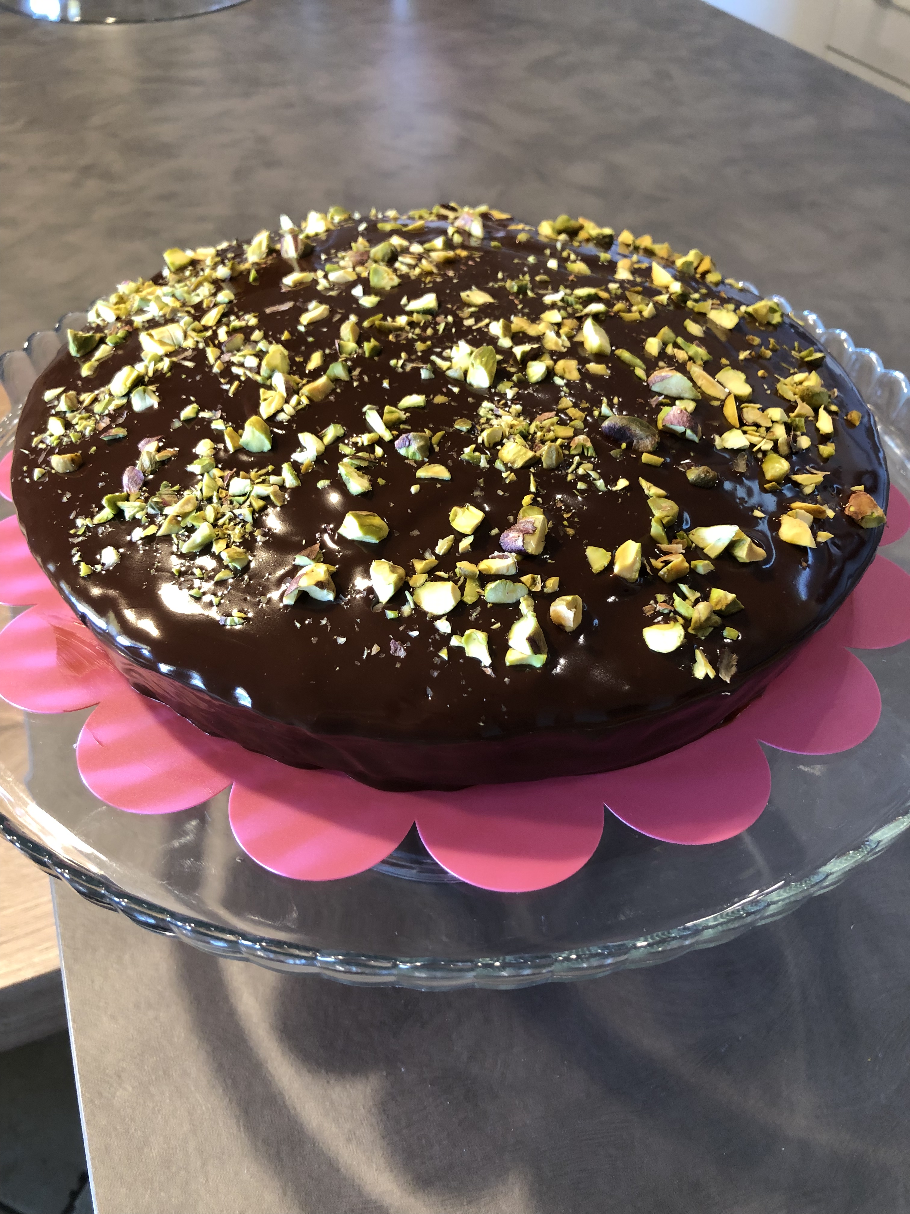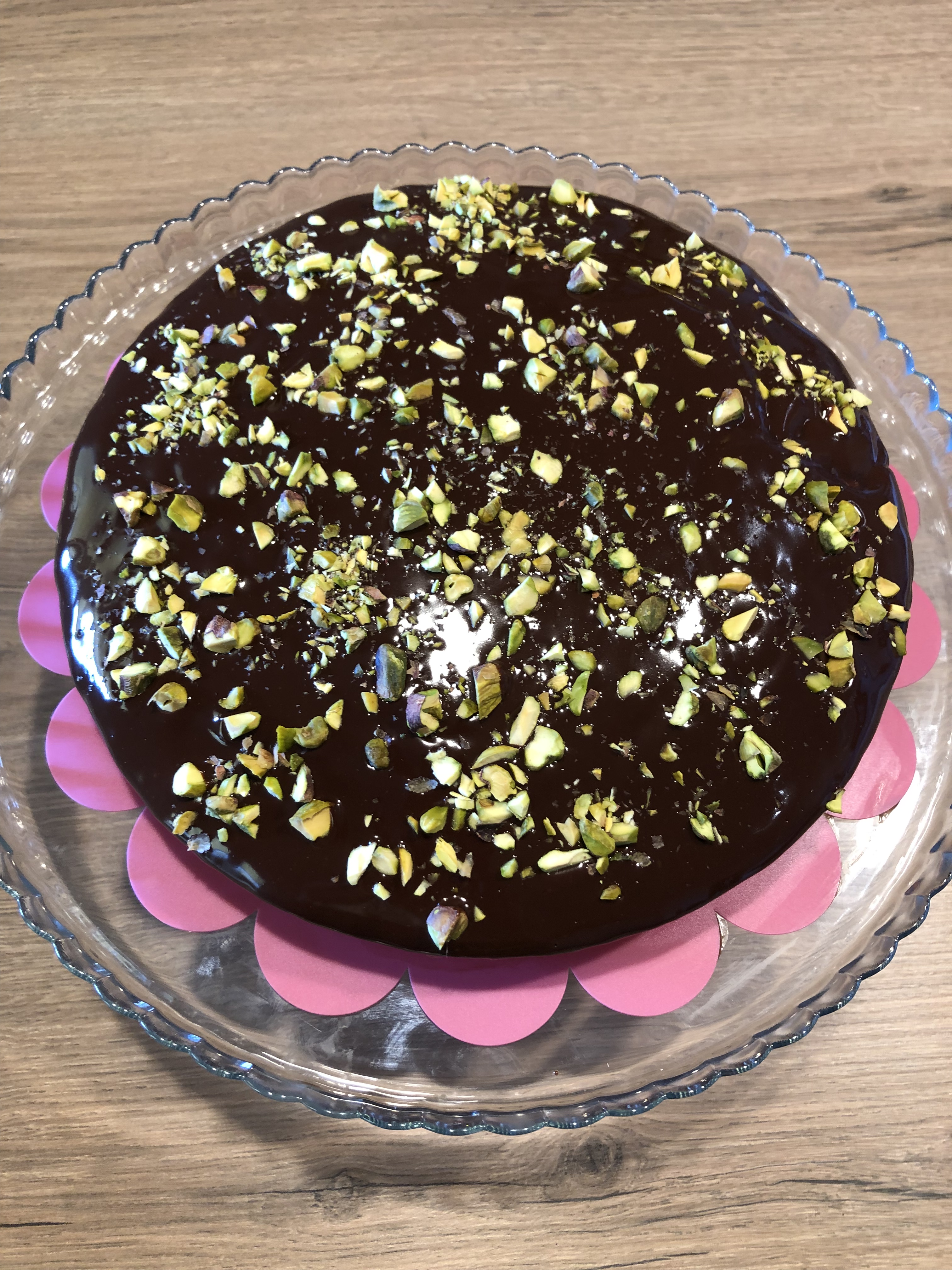 Quando il cioccolato é ben sgocciolata facendo molta attenzione trasferisco la torta sull”alzatina