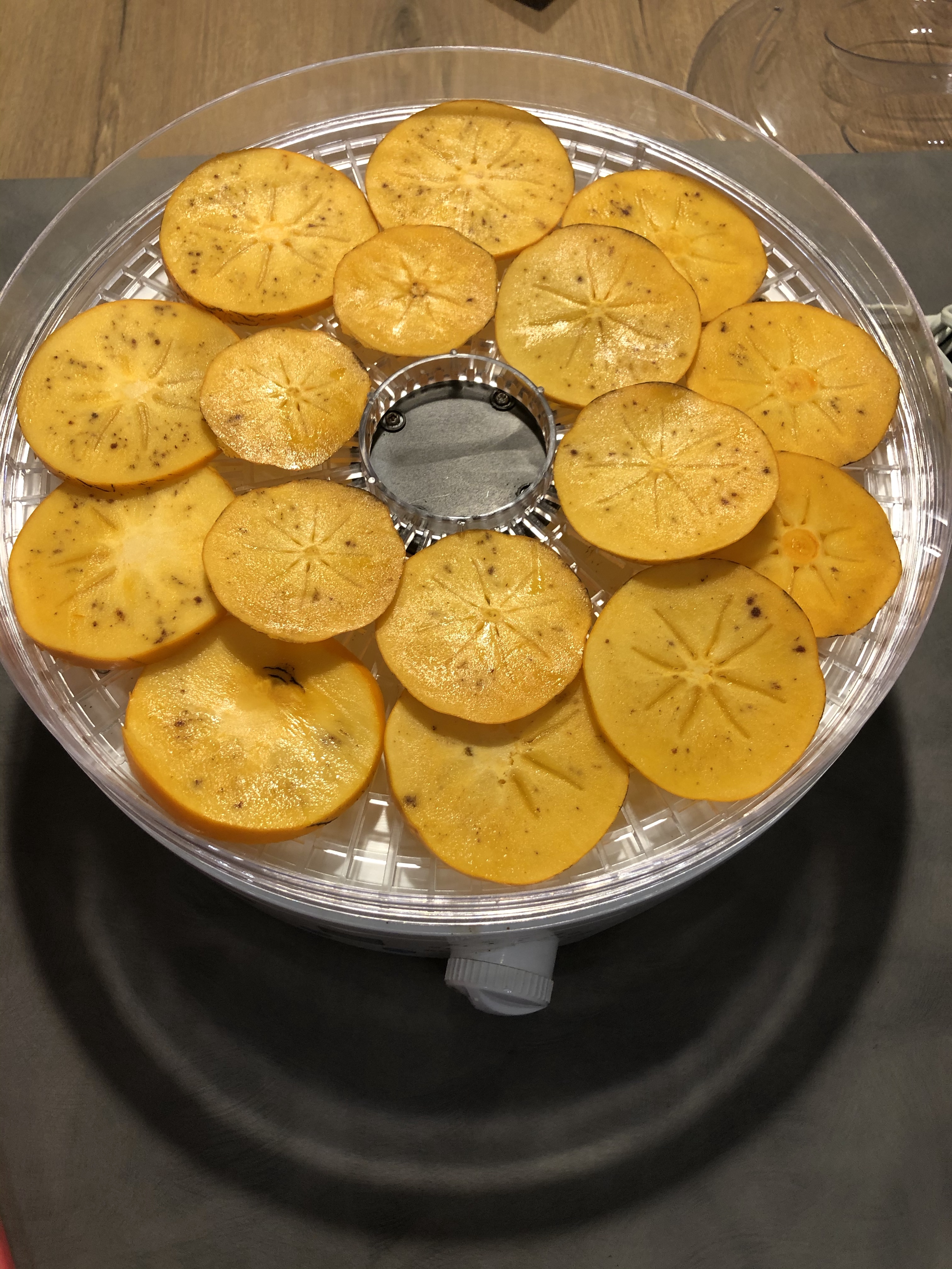 Chiudo con il coperchio e avvio l’essiccatore a 40 gradi per circa 14 ore, a metà tempo li giro e inverto la disposizione dei cestelli, dovete controllare, devono rimanere belli asciutti, il tempo dipenderà dallo spessore e della quantità di acqua contenuta nei frutti, in caso allungo i tempi di essiccatura