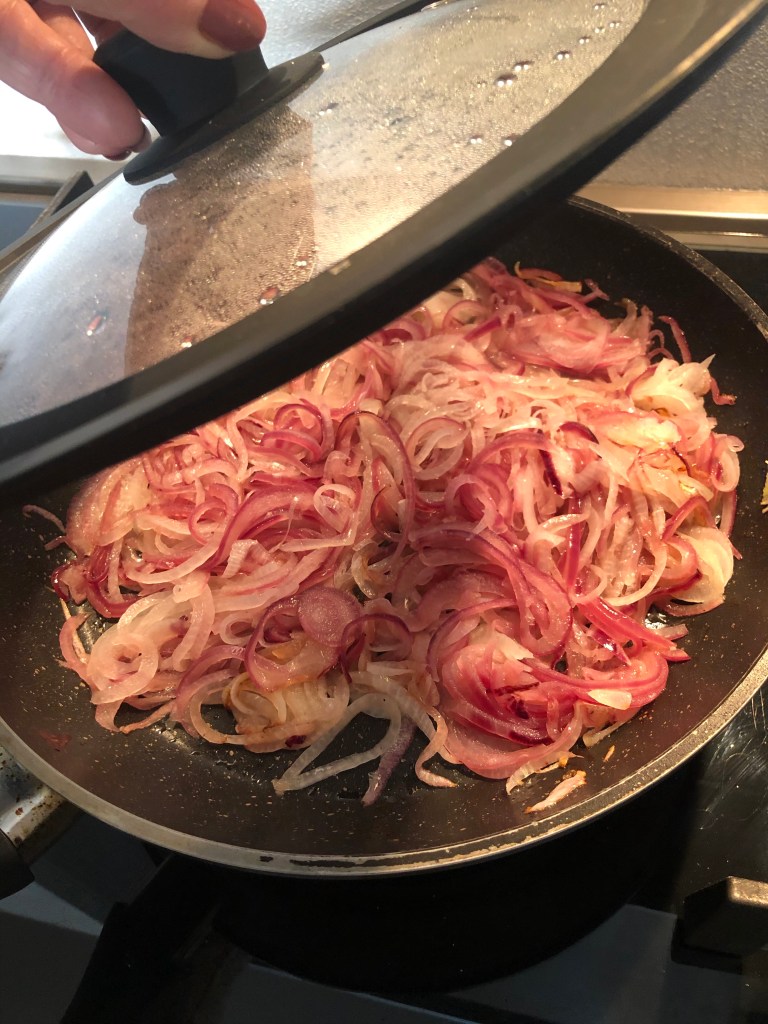 Copro con un coperchio e lascio per alcuni minuti a fiamma bassa per far sciogliere il formaggio