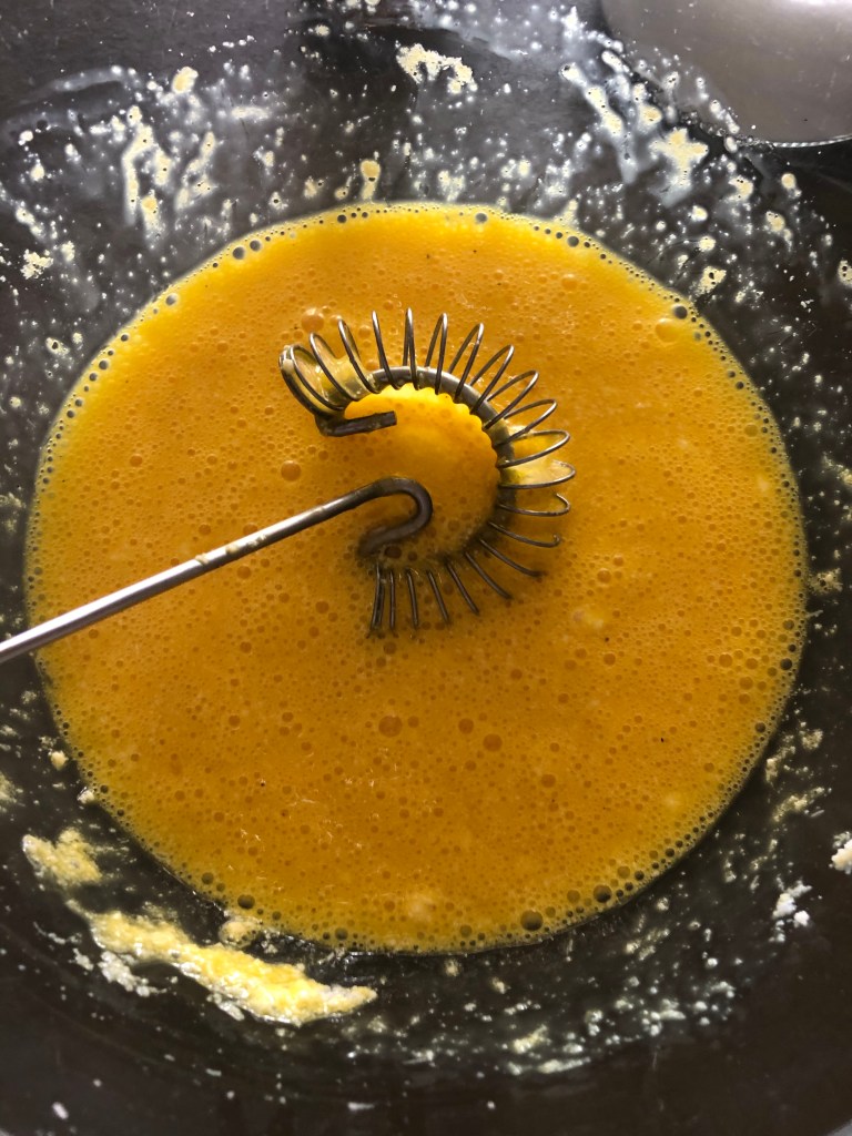 Ungo leggermente di olio un padellino e verso il composto facendo roteare per distribuirlo uniformemente