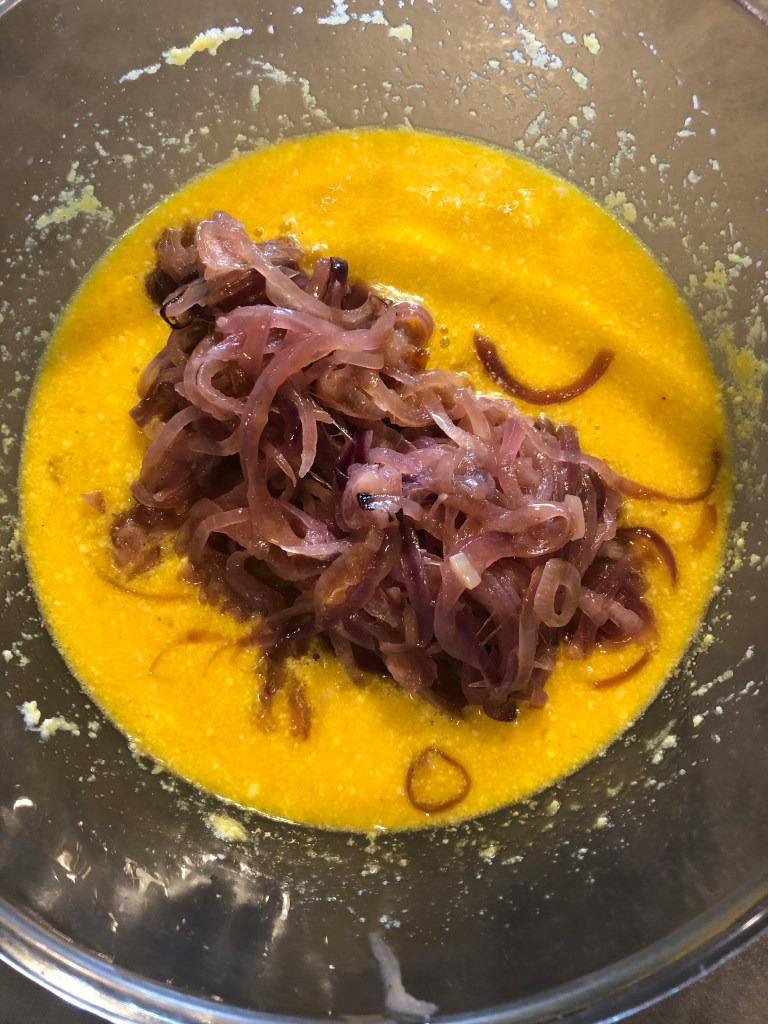 La capovolgo nuovamente e la farcisco con abbondanti verdure e pezzetti di formaggio