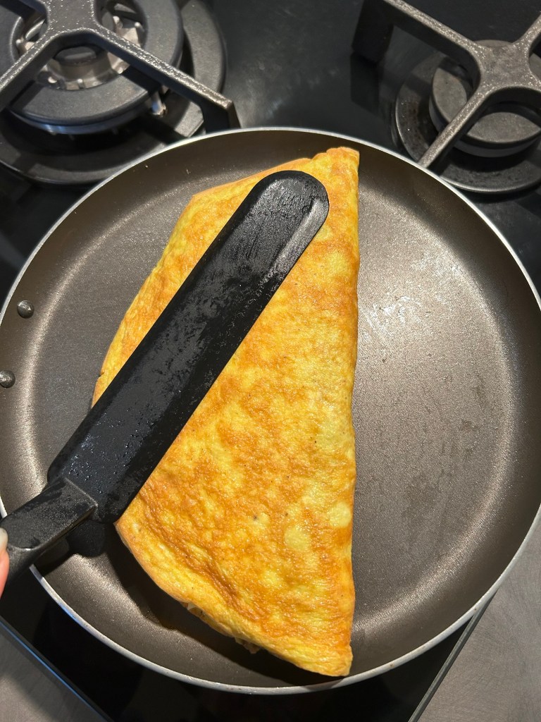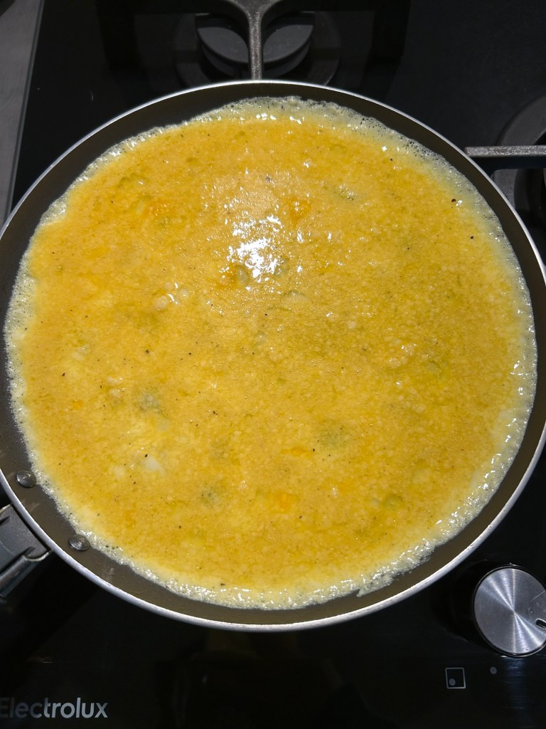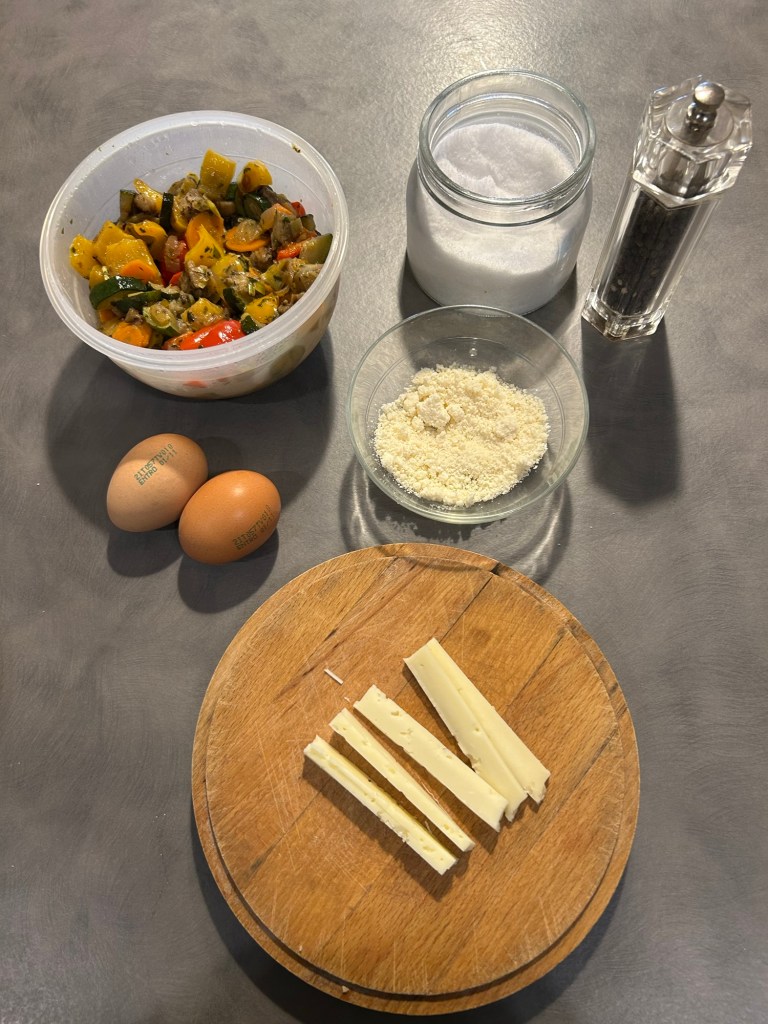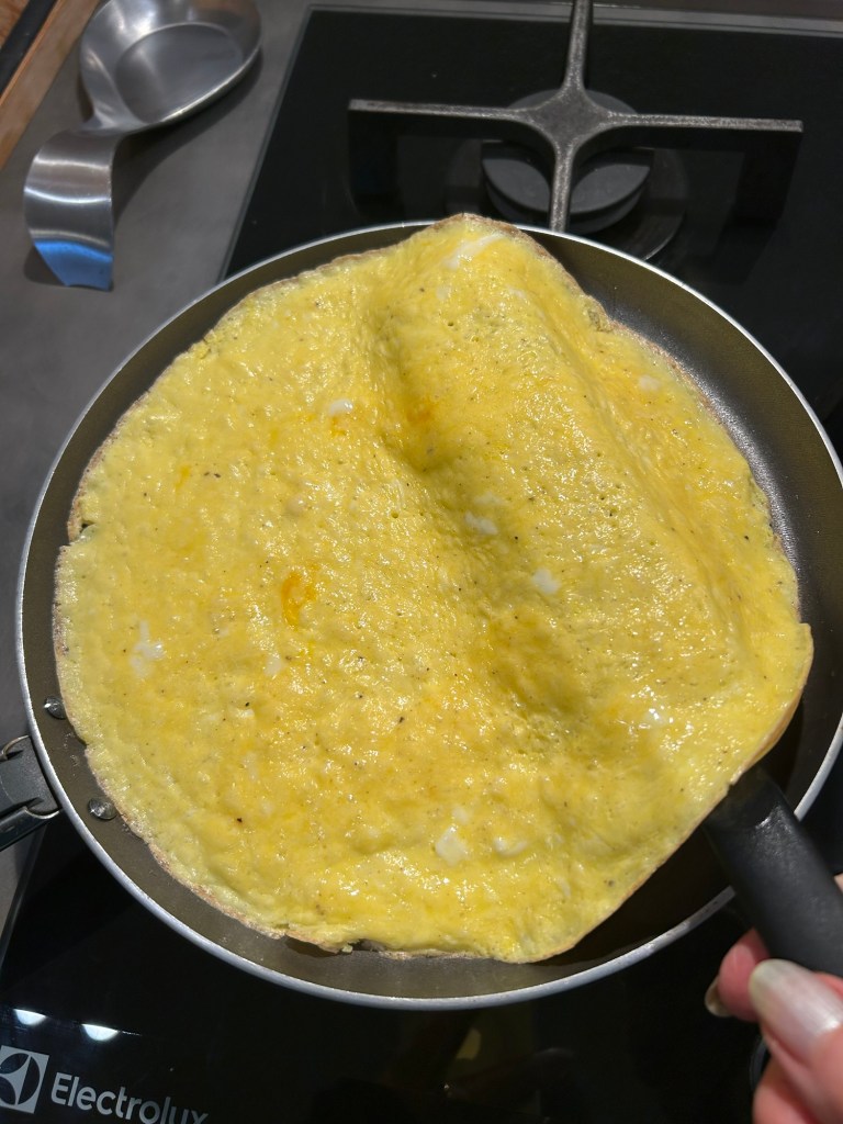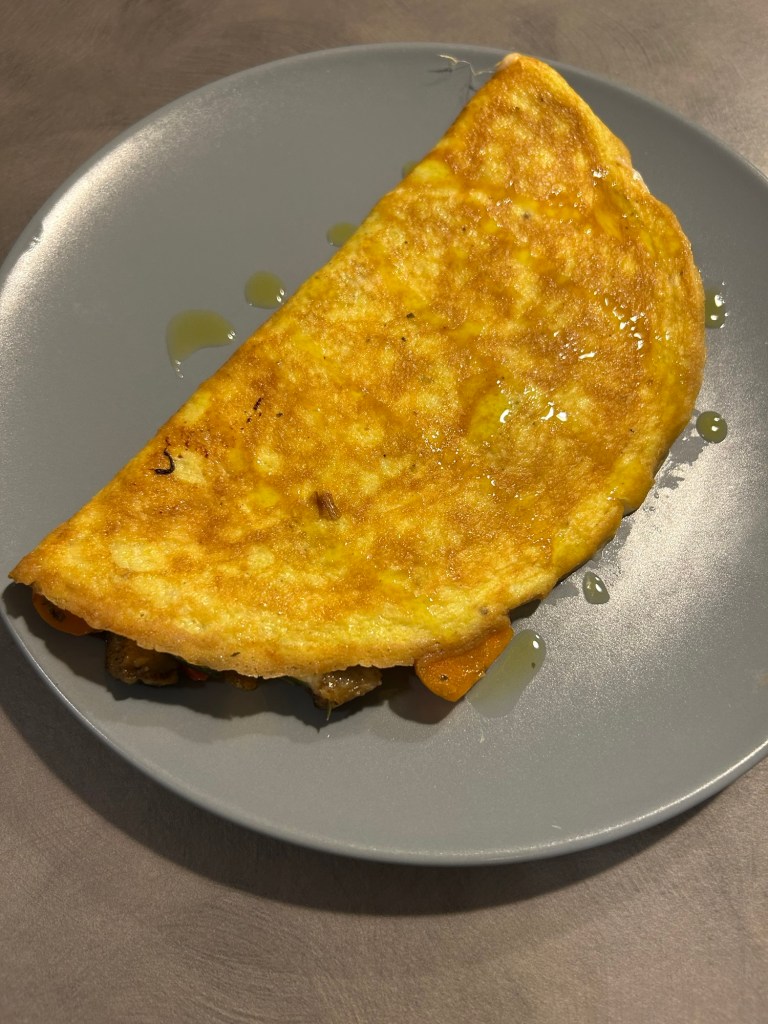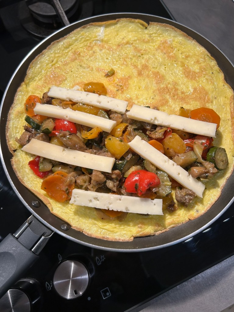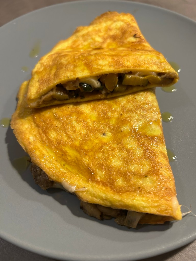 Le uova in casa ci sono sempre, sono un salva cena, l’omelette é un perfetto svuota frigo, farcita in mille modi, con verdure, formaggi, salumi, salmone, io avevo delle verdure miste avanzate che avevo saltato in padella semplicemente con olio pepe e sale e ho aggiunto del formaggio