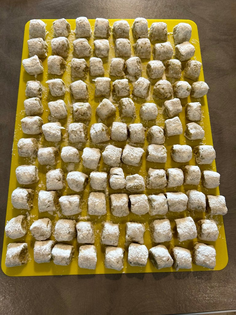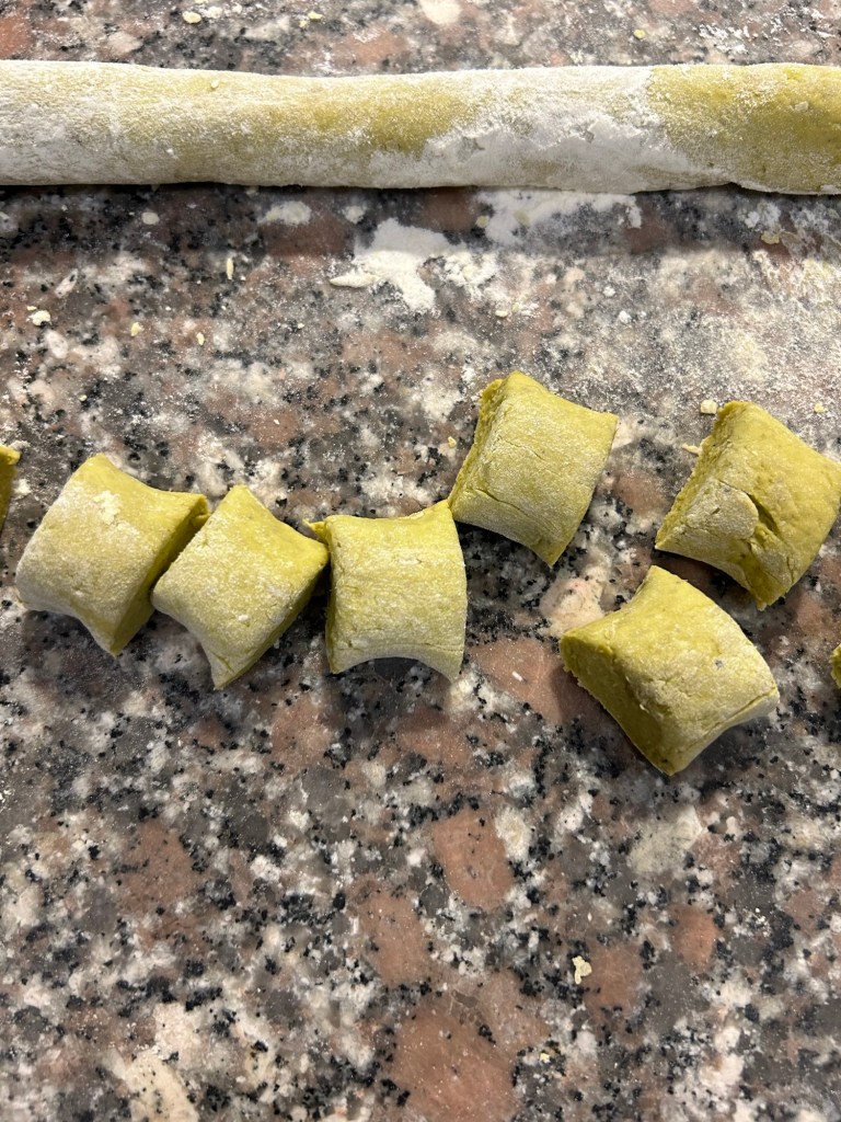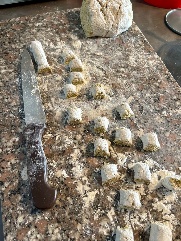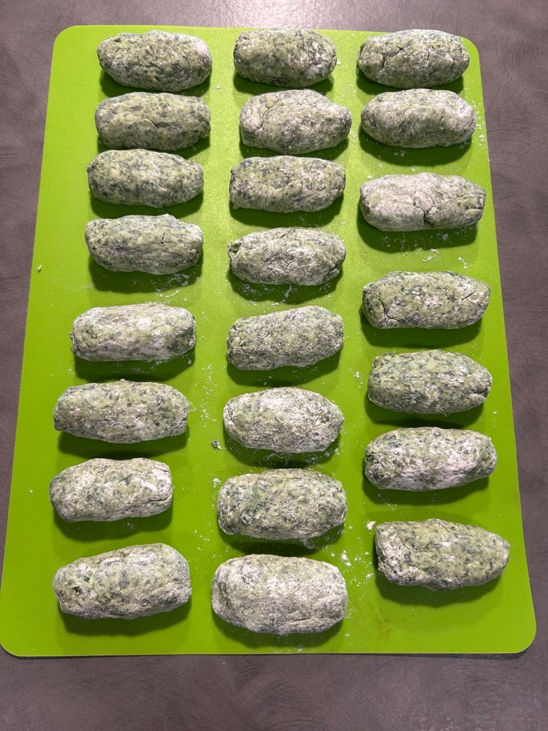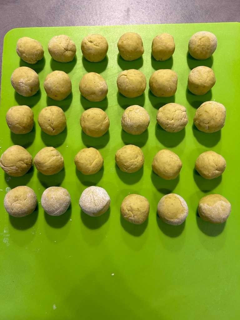 Mi inumidisco le mani e formo dei grossi gnocchi un po’ allungati