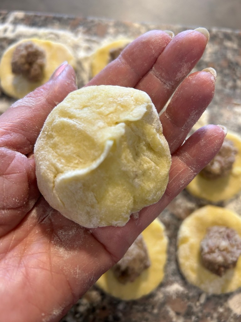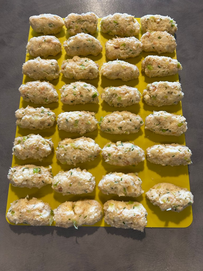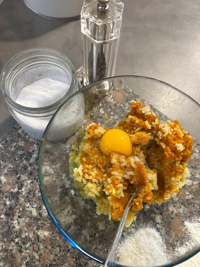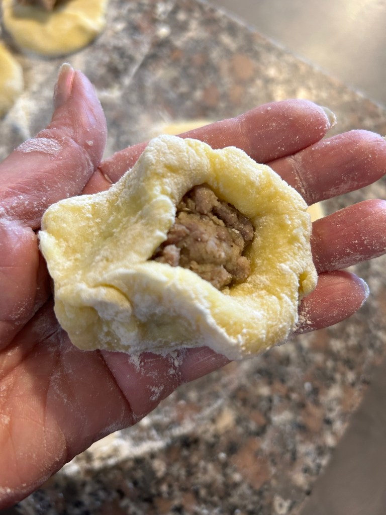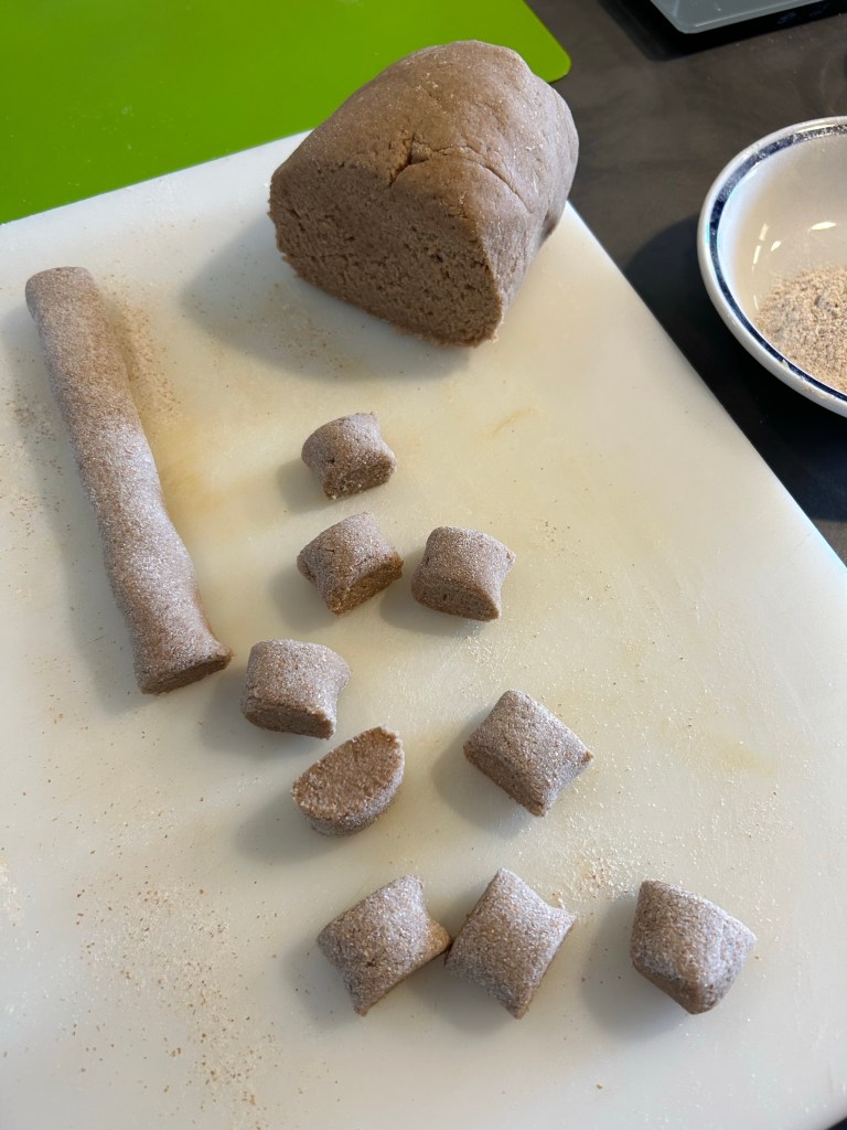 Mi inumidisco le mani e formo dei grossi gnocchi un po’ allungati