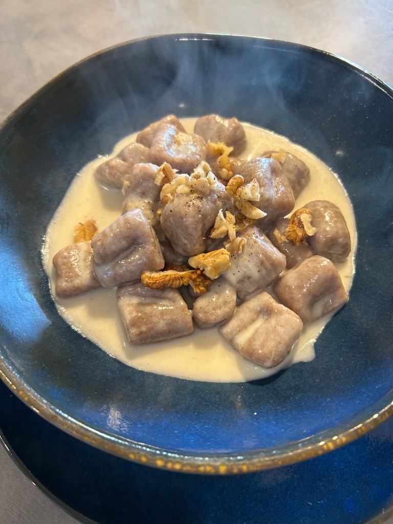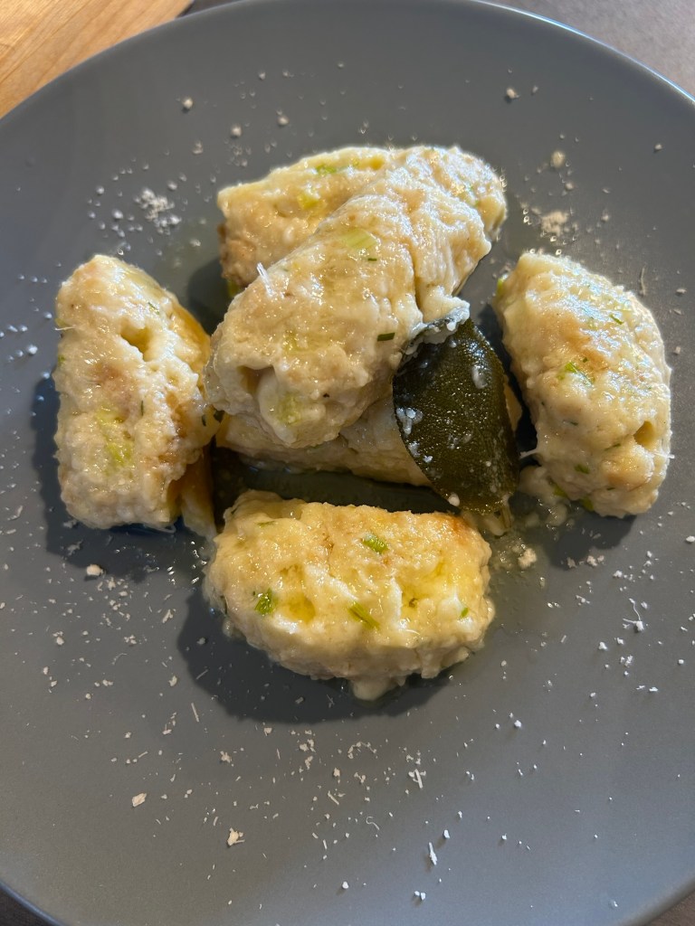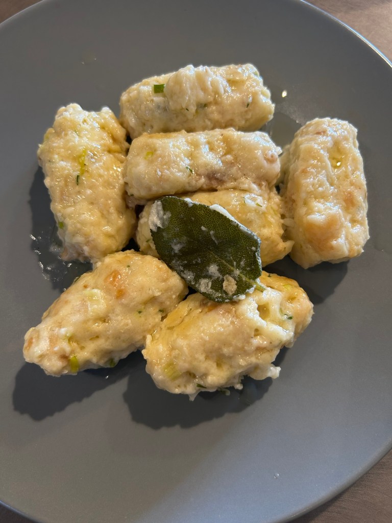Questi gnocchi hanno molte varianti, era considerata una ricetta svuota frigo, il formaggio cuocendo si fonde all’interno degli gnocchi rendendoli filanti, conditi con burro fuso e salvia, una vera bontà con il “TOMBEA” vi assicuro sono fantastici