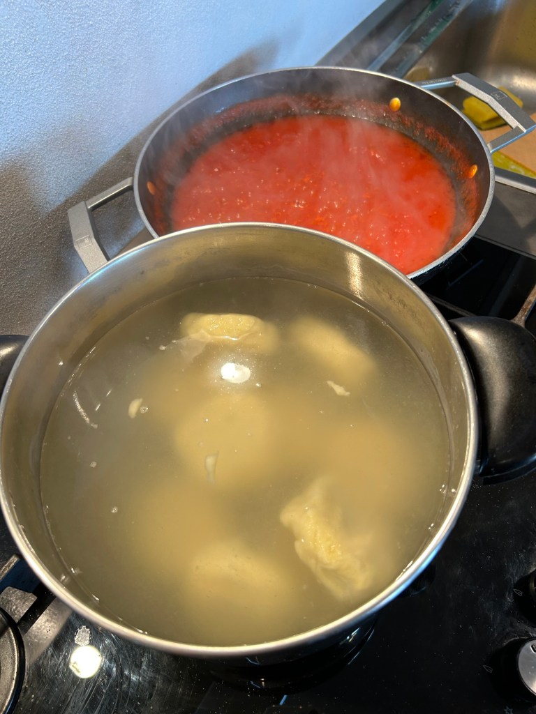 Porto a bollore una capiente pentola con acqua salata e al bollore calo gli gnocchi, devono cuocere dolcemente per circa 10 minuti dal bollore