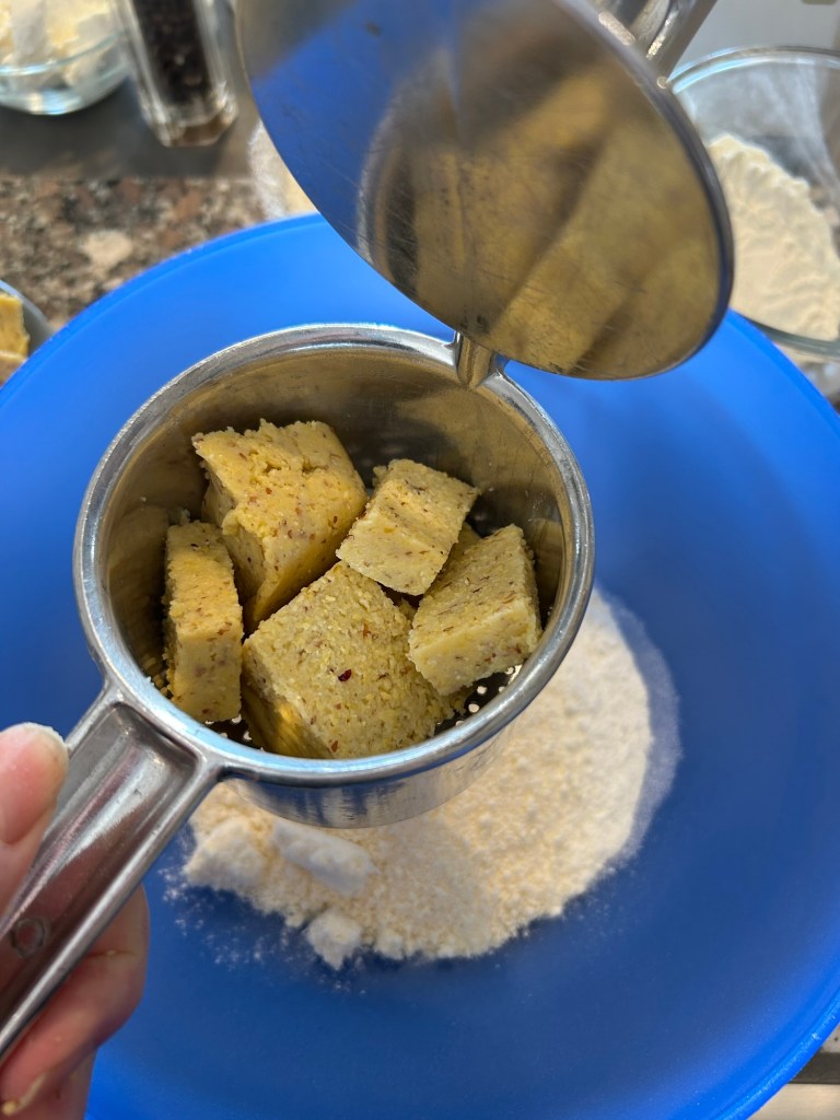Lo taglio a cubetti piccoli e li metto in una ciotola