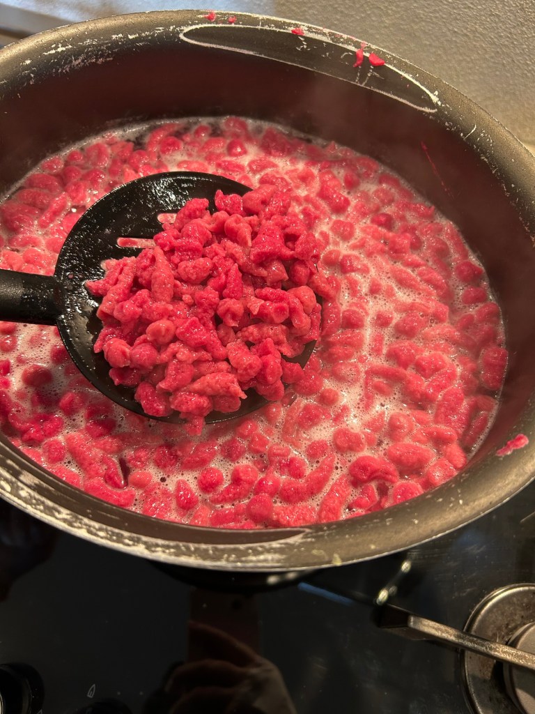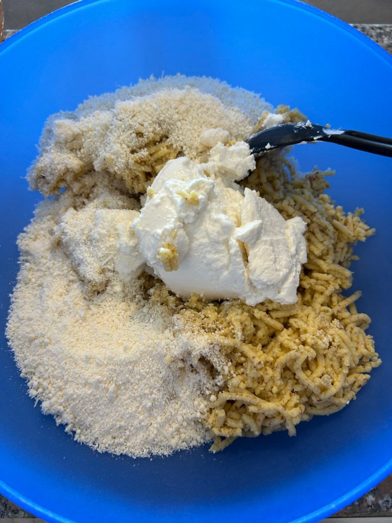I Kasnocken sono degli gnocchi tipici dell’Alto Adige, utilizzando il pane raffermo arricchendolo con formaggi tipici a pasta dura di alpeggio, io ho fatto una variante utilizzato il “TOMBEA”un formaggio tipico della Val Vestino, prodotto negli alpeggi del comune di Magasa nella provincia di Brescia da un solo produttore con latte vaccino delle mucche di razza bruna alpina, dal colore giallo intenso, profumo speziato e sapore leggermente piccante sul finale